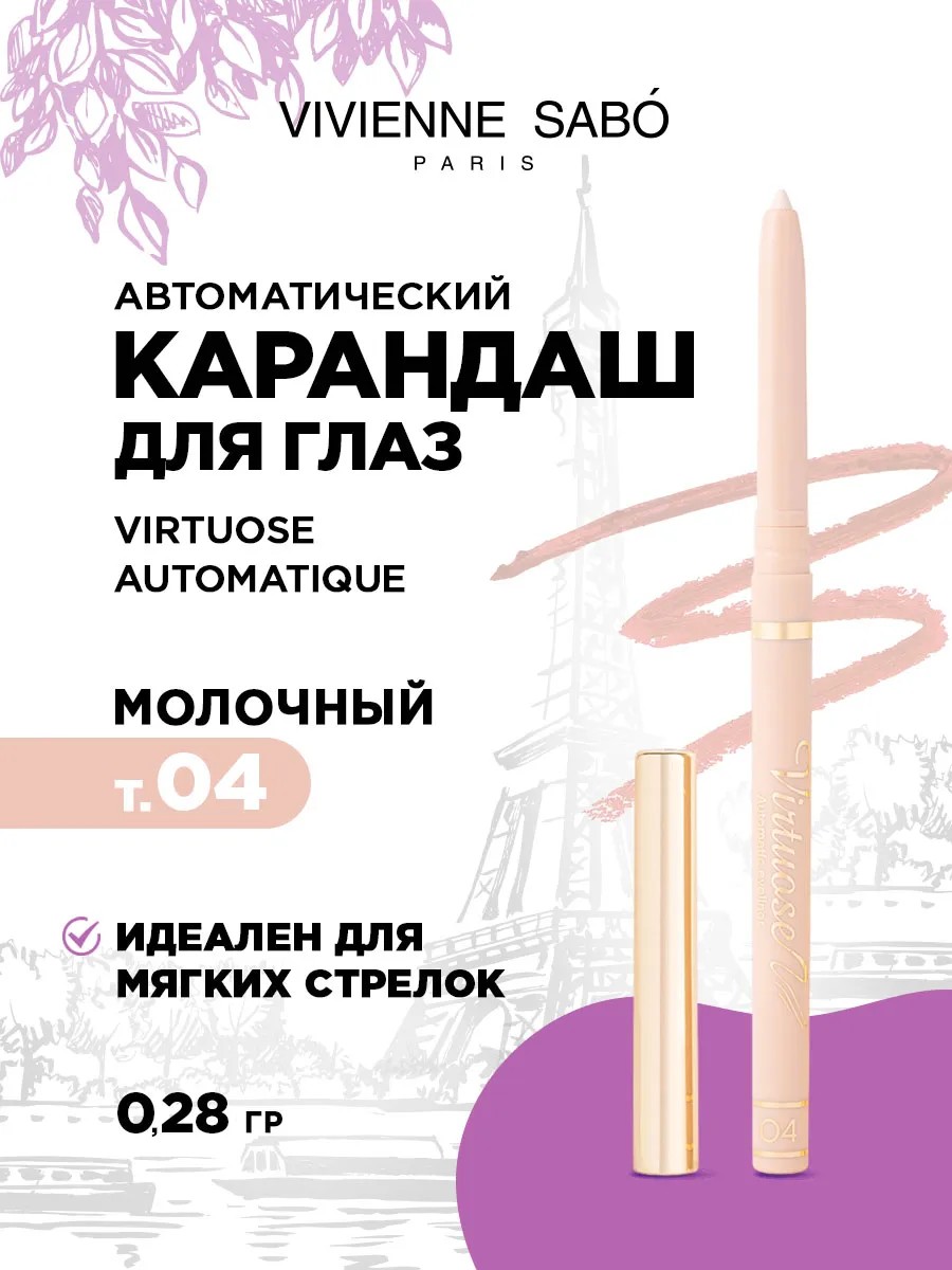 Vivienne Sabo Карандаш для глаз автоматический Virtuose Automatique, тон 04 молочный.