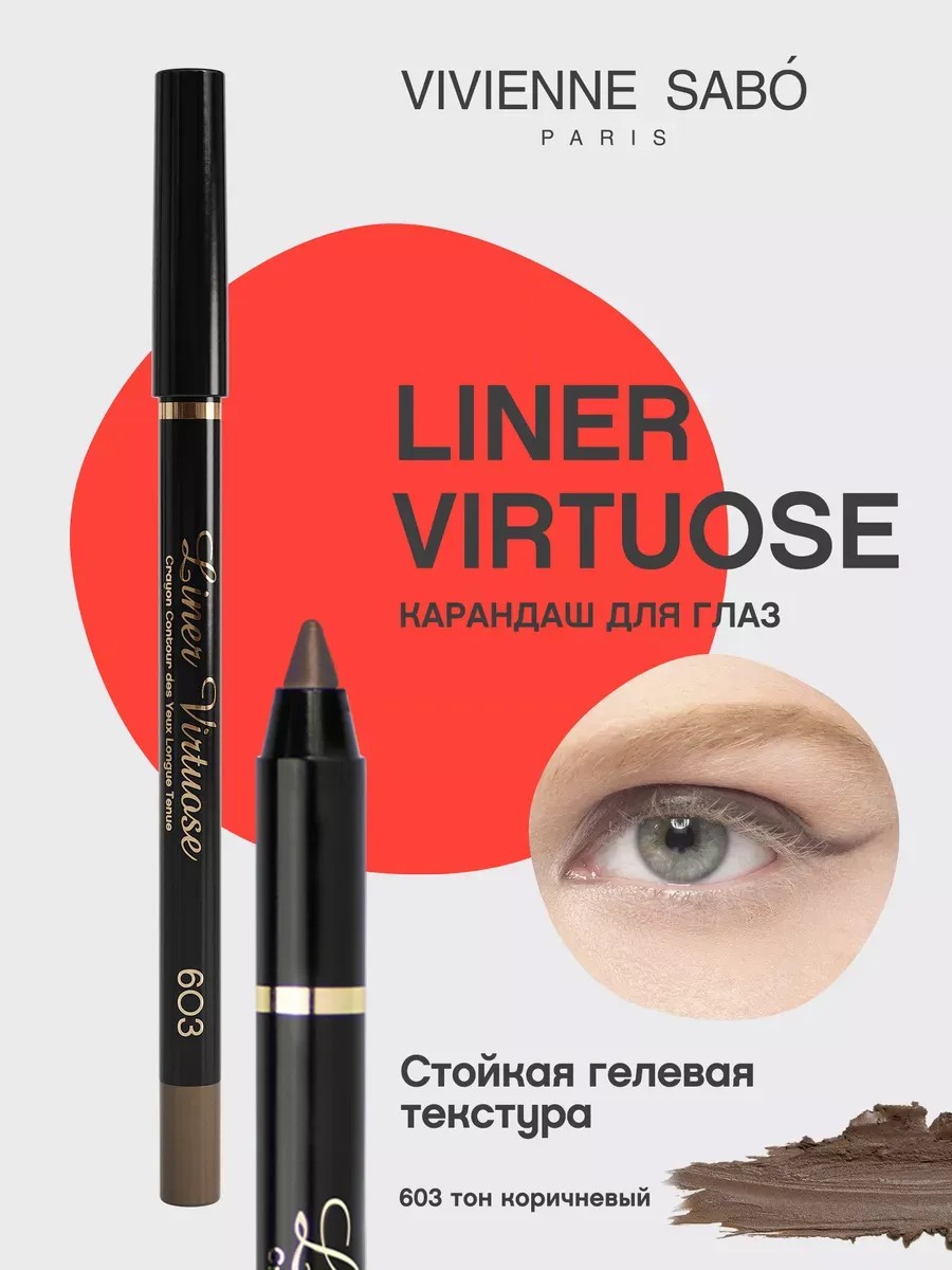 The Vivienne Sabo Virtuose Eyeliner is a gel-based cosmetic pencil, essential for creating vibrant makeup. Shade 603 brown. The super-long-lasting texture quickly sets on the eyelid and lasts all day in any weather. This pencil is perfect for defining eyeliner or blending into long-lasting eyeshadow. The soft texture leaves a soft, silky feel without tugging. This pencil is ideal for defining lashes and creating precise lines. The Virtuose palette features 5 shades: black, brown, beige, silver, and gray, with both shimmery and matte finishes. This pencil allows you to create both precise lines and soft blending, allowing you to experiment with different beauty looks. This long-lasting eyeliner fits comfortably in your makeup bag. Vivienne Sabo makeup is not tested on animals. HOW TO USE: Using a well-sharpened gel eyeliner pencil, apply a line along the base of your lashes using sweeping motions. Blend if desired. Create a vibrant and expressive look with Vivienne Sabo Cosmetic Eyeliner!