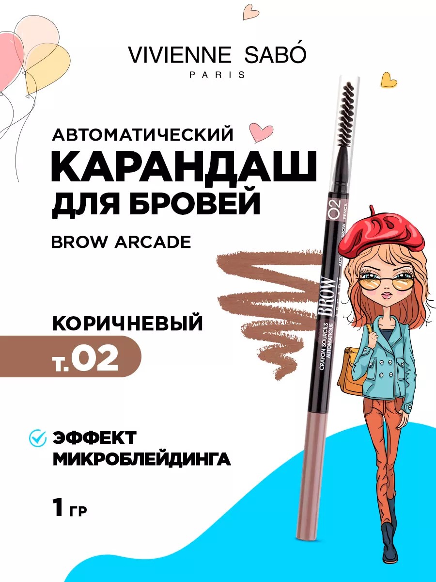 Vivienne Sabo Карандаш для бровей автоматический Brow Arcade, тон 02 коричневый.