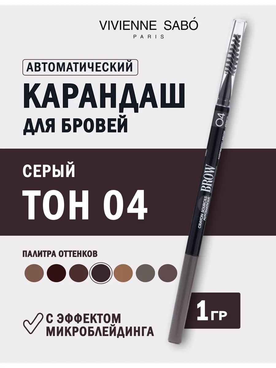 Vivienne Sabo Карандаш для бровей автоматический Brow Arcade, тон 04 серый.