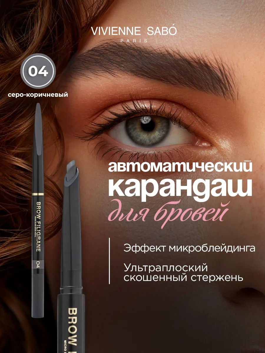 Vivienne Sabo Карандаш для бровей автоматический Filigrane, тон 04 серо-коричневый. Объём: 0,2 гр.