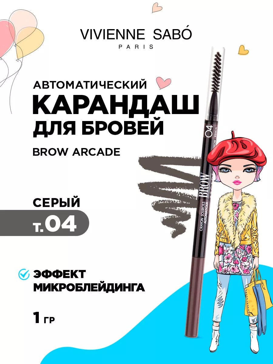 Vivienne Sabo Карандаш для бровей автоматический Brow Arcade, тон 04 серый.