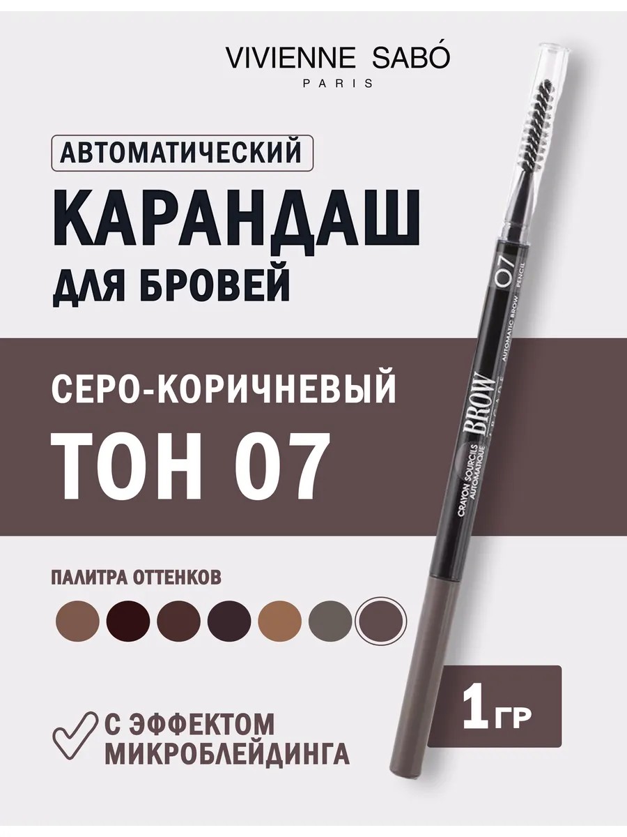 Vivienne Sabo Карандаш для бровей автоматический Brow Arcade, тон 07 серо-коричневый.