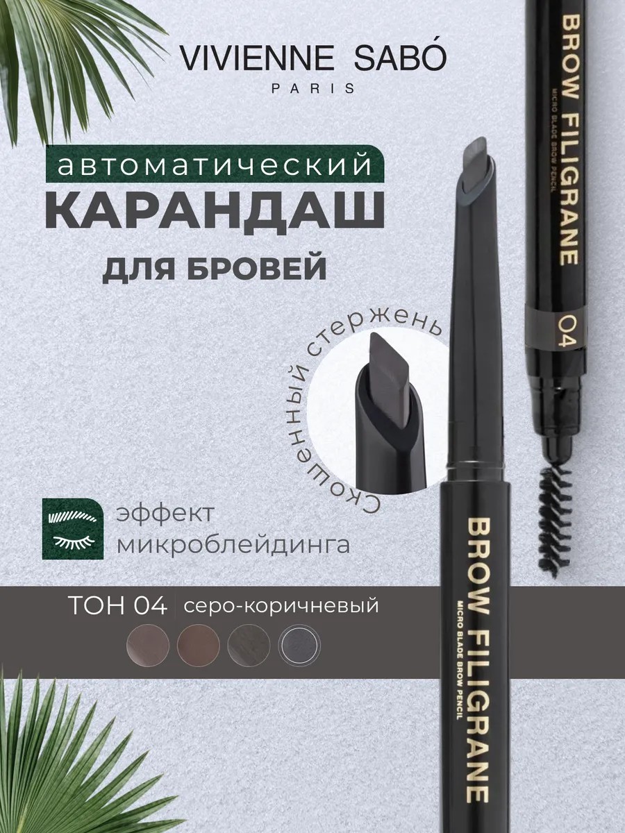 Vivienne sabo карандаш для бровей серо-коричневый Filigrane 04 с выдвижным грифелем и эффектом микроблейдинга.