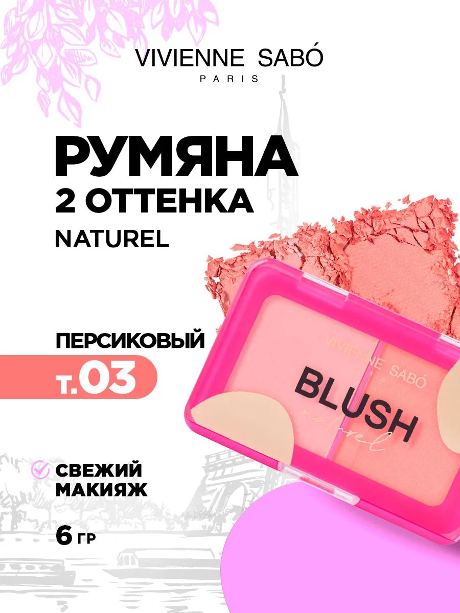 Vivienne Sabo Румяна двойные Naturel, тон 03 персиковый. Объем: 6гр.