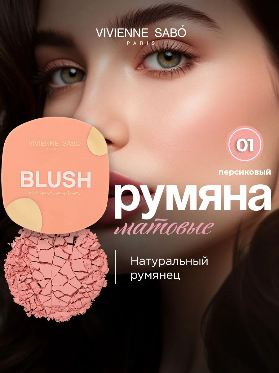 Vivienne Sabo Матовые Румяна для лица Macaron, тон 01 персиковый.
