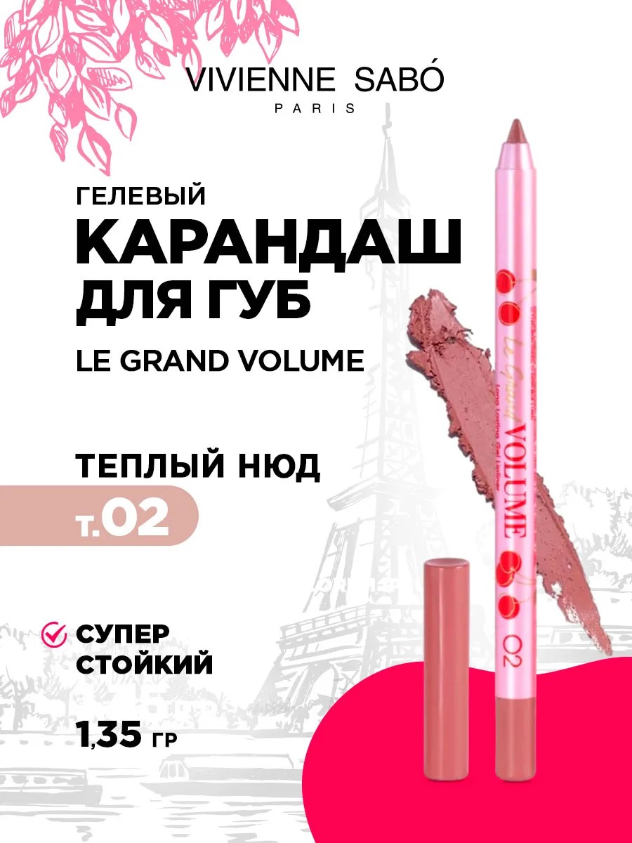 Vivienne Sabo Карандаш для губ устойчивый гелевый Le grand volume, тон 02 теплый нюд. Объём: 1,35г.