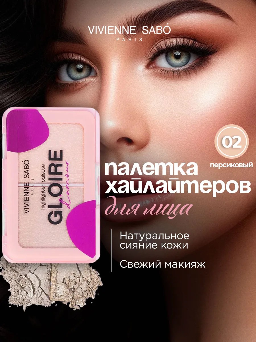 Хайлайтер для лица сухой Палетка 2в1 Vivienne Sabo Gloire D'amour, тон 02 персиковый. Объём: 5гр.