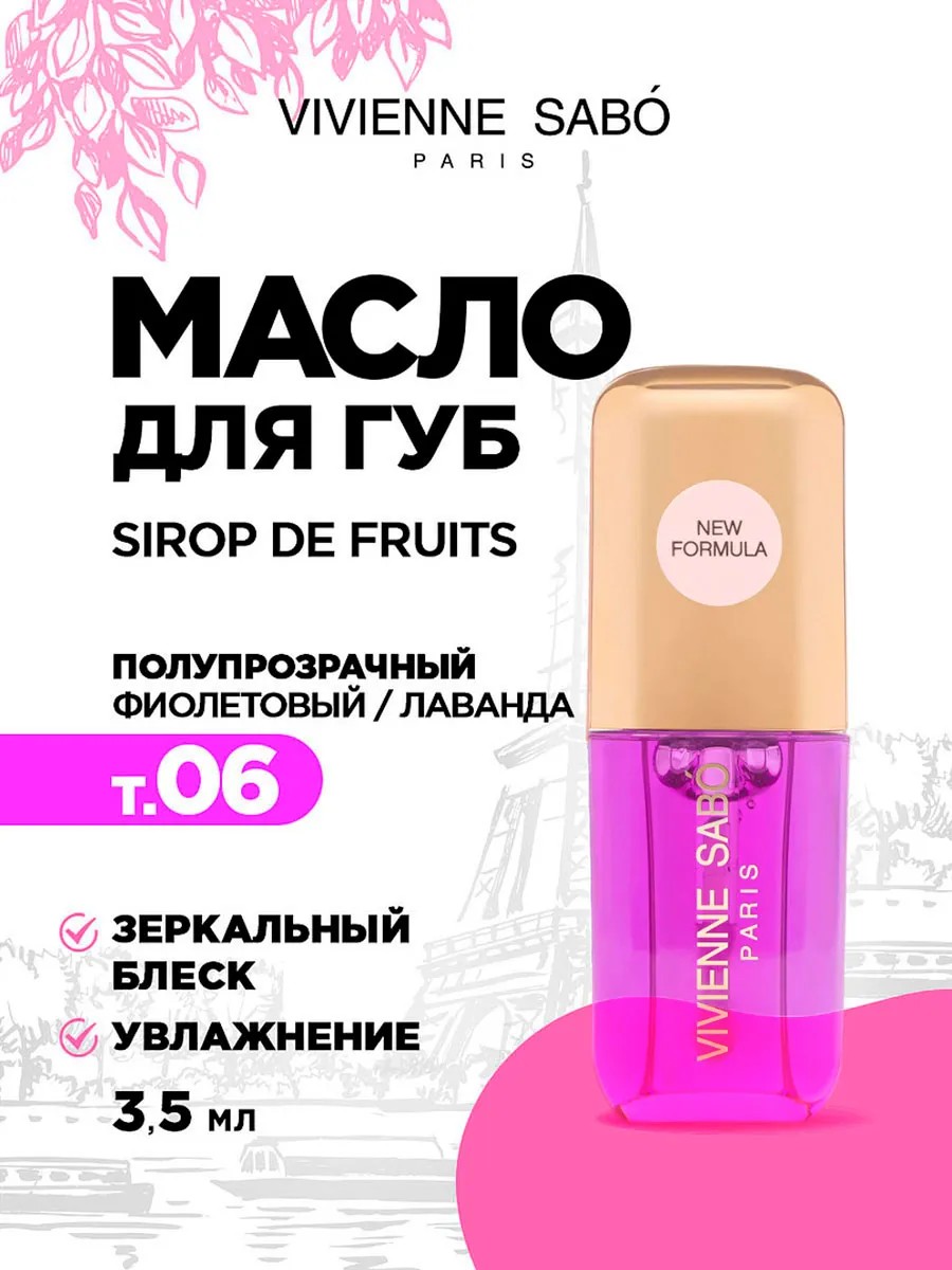 Масло для губ Vivienne Sabo Sirop de Fruits, тон 06 полупрозрачный фиолетовый / с легким ароматом лаванды. Объём: 3,5мл.