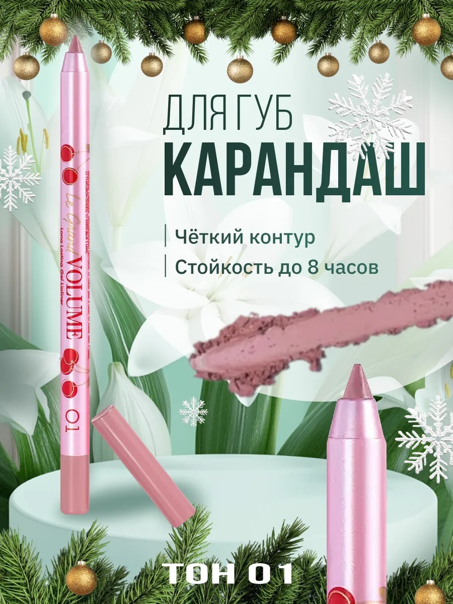 Суперстойкие карандаши для губ!Le Grand Volume сделают ваши губы объемными и соблазнительными!Нежная кремовая текстура легко наносится . Устойчивая формула держится на коже весь день и не дает помаде и блеску растекаться, а 5 универсальных насыщенных оттенков идеально дополнят любой макияж!Совет:Лайфхак: Текстура карандаша настолько нежная, что его можно наносить на всю поверхность губ вместо помады. Несколько простых движений, и ваши губы выглядят бесподобно!