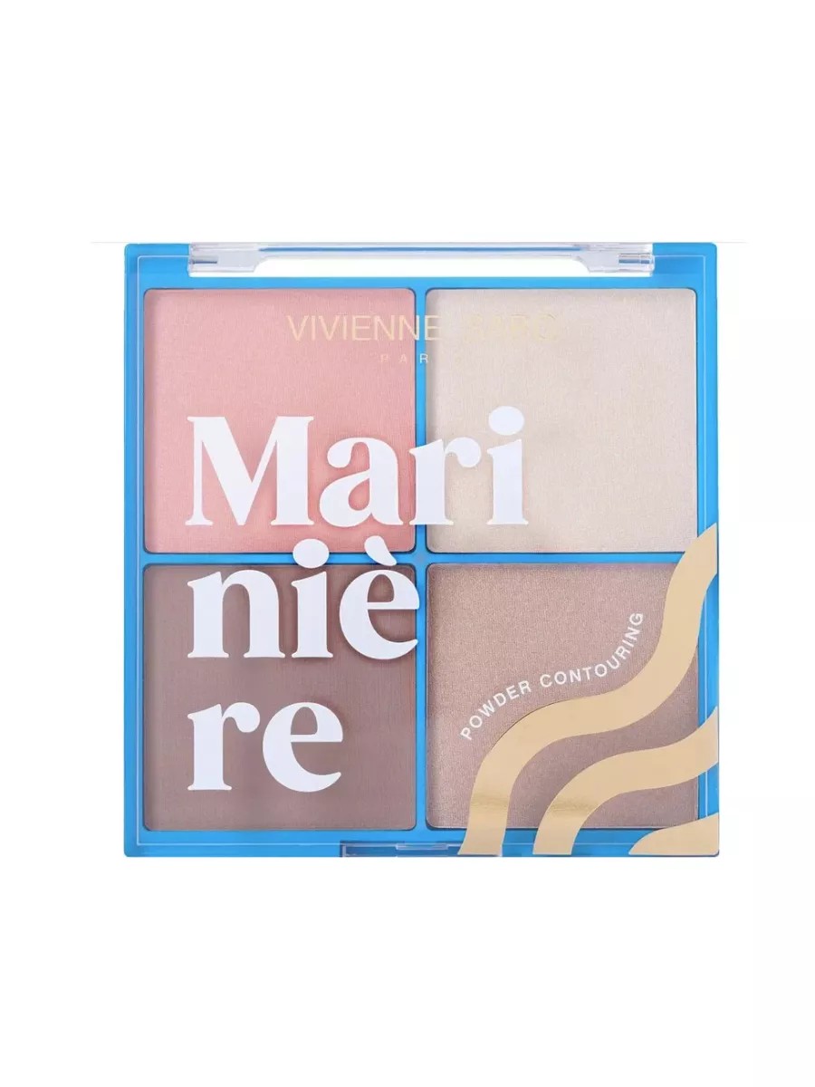 Vivienne Sabo Mariniere, Пудровая палетка для скульптурирования лица тон 01 жемчужно-розовый 1 шт. Скульптурирующая палетка для лица с настроением морского курорта - это 4 в 1 для красивого натурального контуринга. Палетка с пудровой текстурой поможет тебе выделить скулы, придать лицу нежный румянец и деликатное сияние. В палетке — скульптор, бронзер, румяна и хайлайтер в универсальных оттенках. Они мягко растушевываются и хорошо подстраиваются под тон кожи. Продукты в пудровой текстуре наноси на лицо с помощью кисти. Ты можешь создать макияж с натуральным финишем и эффектом загара, а дизайн упаковки точно напомнит тебе об отпуске на море.