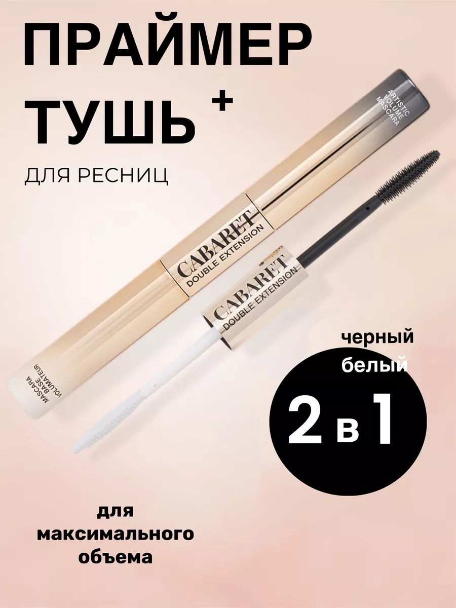 "CABARET DOUBLE EXTENSION от VIVIENNE SABO — двойной продукт, с которым ты создашь эффект наращенных ресниц. 2 в 1 для твоего невероятного взгляда: праймер, который обеспечивает дополнительный объем, и черная тушь с удобной щеточкой для густоты и разделения. Сначала нанеси на ресницы белый праймер — идеальную базу, которая ухаживает за волосками, делает их пушистыми и удлиненными. А сверху добавь несколько слоев черной туши зауженной щеточкой, чтобы придать сценический объем. Результат — образ с разделенными, яркими и объемными ресницами, который стойко держится весь день. С двойным продуктом CABARET DOUBLE EXTENSION ты точно добьешься потрясающего эффекта наращенных ресниц! "