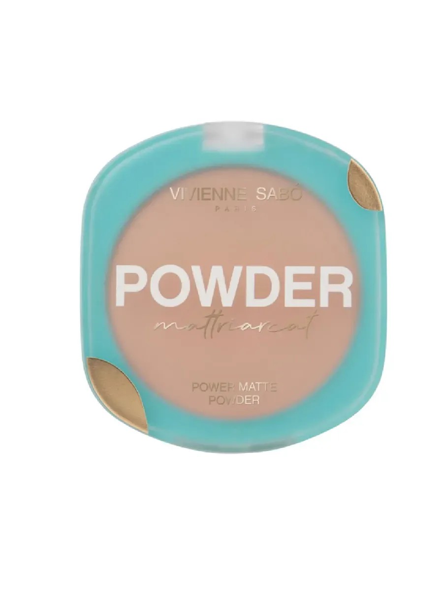 Vivienne Sabo, Mattriarcat Compact Mattifying Powder 04, 7.5 g. This isn't just a cosmetic product; it's a symbol of feminine strength and self-confidence. It will highlight your natural beauty, set your makeup, and keep your skin perfectly matte through any challenge, giving you confidence and supporting you in all your decisions. This powder, housed in a blue matte packaging with a transparent lid, provides medium coverage and contains minerals, making skin soft and silky and eliminating shine. It can be applied to clean skin to subtly even out skin tone and visually correct imperfections, or over creamy foundations to set makeup and prolong its wear.
