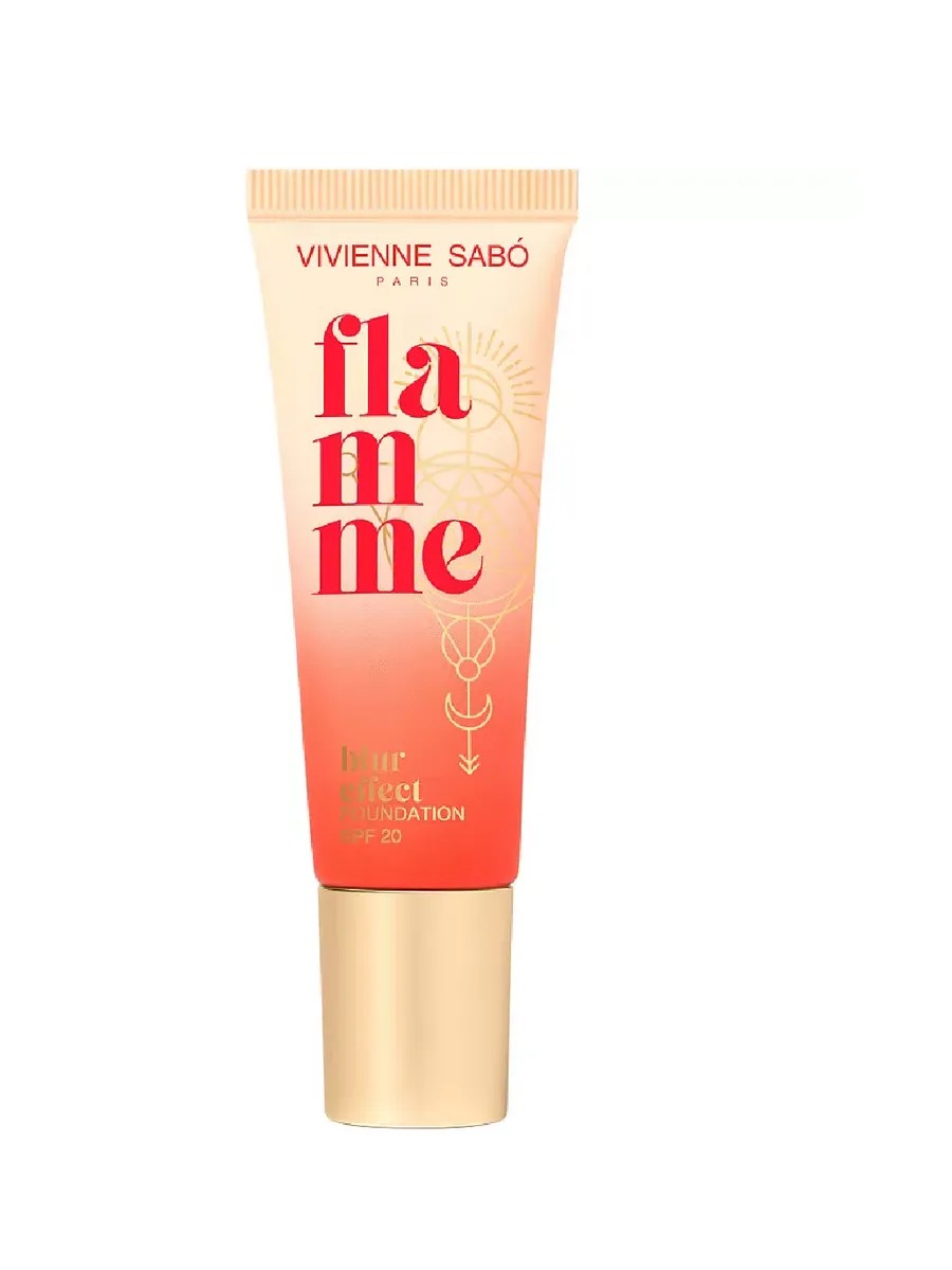 Vivienne Sabo, Foundation with SPF for Face / Foundation with SPF for Face / Fond de teint with SPF for le visage "Flamme" 02, 23 ml. With SPF 20 and a blur effect, it will complement your daily summer makeup and protect from the harmful effects of the sun. The fiery July sun of Paris inspired the creation of FLAMME foundation. Like fire, it gives skin a natural glow, leaving it healthy and radiant. The silky texture applies easily, blends with skin, and creates medium to full coverage with a satin finish. Thanks to SPF 20, the foundation protects skin from harmful UV rays. It not only improves the appearance of skin but also cares for its health and youth. The foundation, available in three natural shades, is packaged in a tube with a matte finish and a gold pattern symbolizing one of the elements. With FLAMME, your skin will glow with the fire of passion and energy.