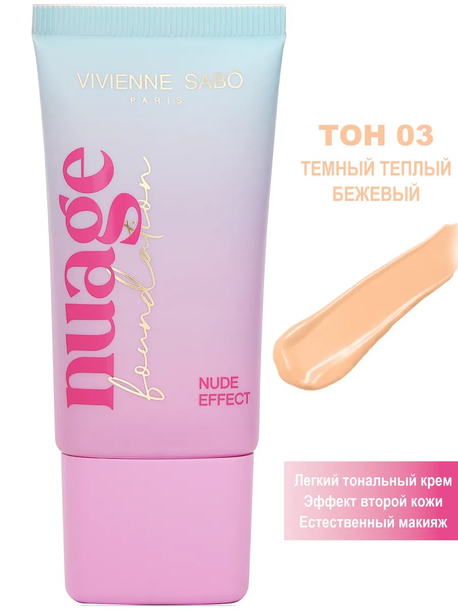 Тональный крем для лица Nuage foundation от Vivienne Sabo с эффектом естественной кожи выравнивает цвет лица и глубоко увлажняет кожу, придавая ей шелковистость и гладкость.