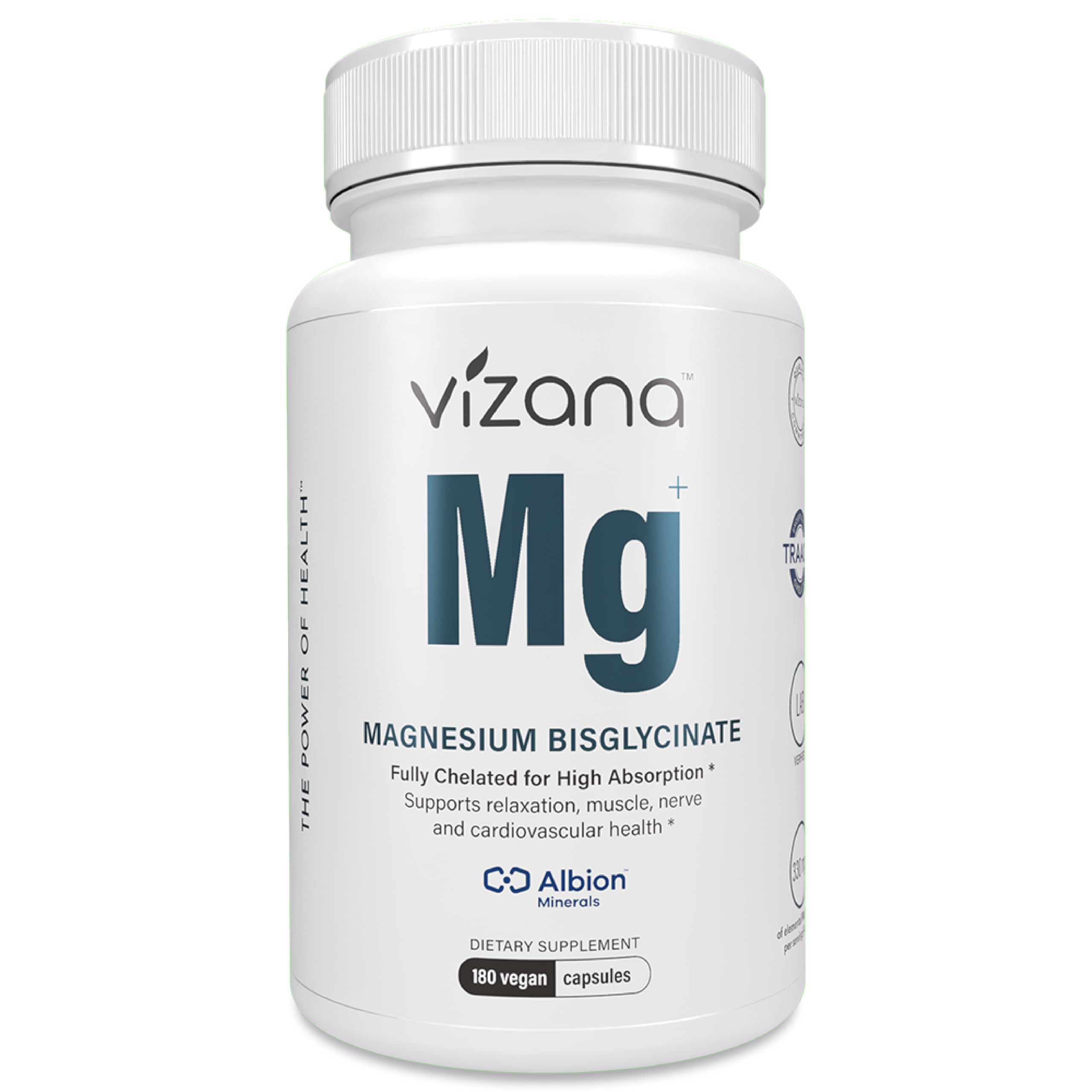 FDA Disclaimer: These statements have not been evaluated by the Food and Drug Administration. This product is not intended to diagnose, treat, cure, or prevent any disease. The VIZANA Quality Commitment Crafted under strict GMP guidelines in a certified FDA-registered facility. Free from gluten, dairy, soy, magnesium stearate, and artificial additives. Lab tested for purity and potency. . Maximum Absorption with 330mg Elemental Magnesium Delivers an effective dose of magnesium to support muscles, nervous system, sleep, and energy metabolism. Formulated for consistent results and optimal daily support. . Gentle on the Stomach, Non-Laxative Formula Our clean formula is non-buffered and non-granulated, providing pure elemental magnesium in its most bioavailable form, without causing stomach discomfort or laxative effects. . 180 High-Purity Vegan Capsules VIZANA NUTRITION offers a premium magnesium supplement made with 100 Albion TRAACS, fully chelated for high absorption and gentle digestion. No fillers, no artificial ingredients. . 100 Pure Non-Buffered Magnesium Bisglycinate Chelate Unlike many brands that use cheaper buffered blends with magnesium oxide, VIZANA uses fully reacted Albion TRAACS bisglycinate — no oxide, no buffers, just pure chelated magnesium with superior absorption. .