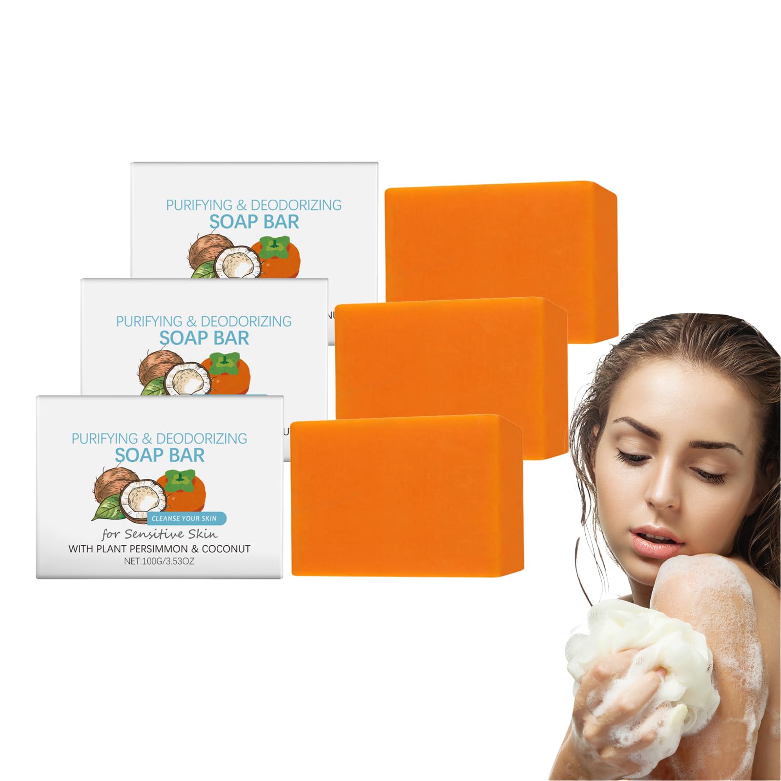 VKaoess Coconut & Persimmon Solid Soap Bar Natural Eco Friendly Body Wash Bar for face and body gentle cleansing for natural skin refreshing scent for men and women 3 pieces