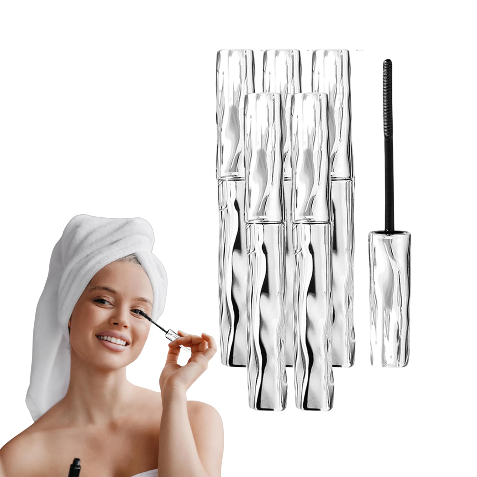 VKaoess Waterproof Iron Wand Mascara for Fine Short Eyelashes Telescopic Hose Mascara Black for Length Smudge Proof No Flaking No Clumping Curls and Eyelash Lift Effect 5 Pieces