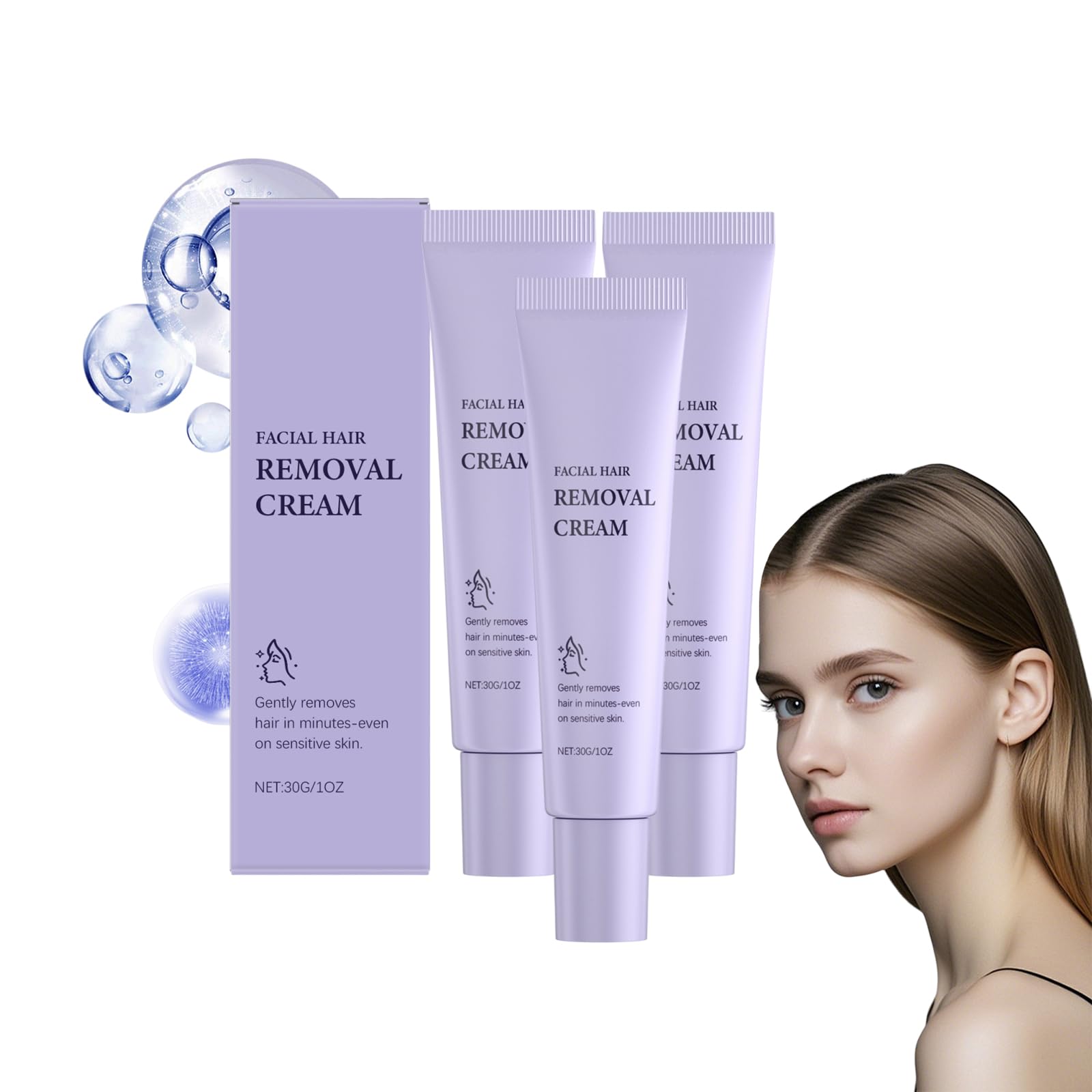 VKaoess Womens Facial Hair Removal Cream for Soft Skin Gentle hair removal cream for face and body painless bikini and gentle hair solution smooth skin for the most young skin types 3 pieces