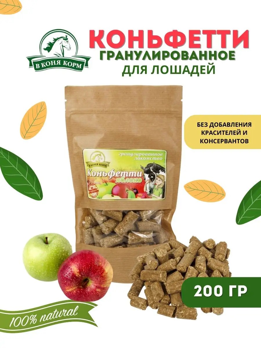 ВКОНЯКОРМ КОНЬФЕТТИ яблоко - натуральное лакомство для лошади 200 гр