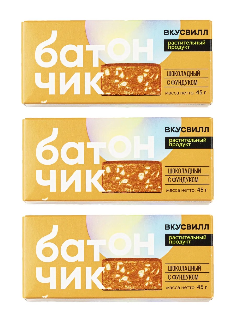 Батончик «Шоколадный с фундуком», веган, 3шт. по 45гр. ВкусВилл