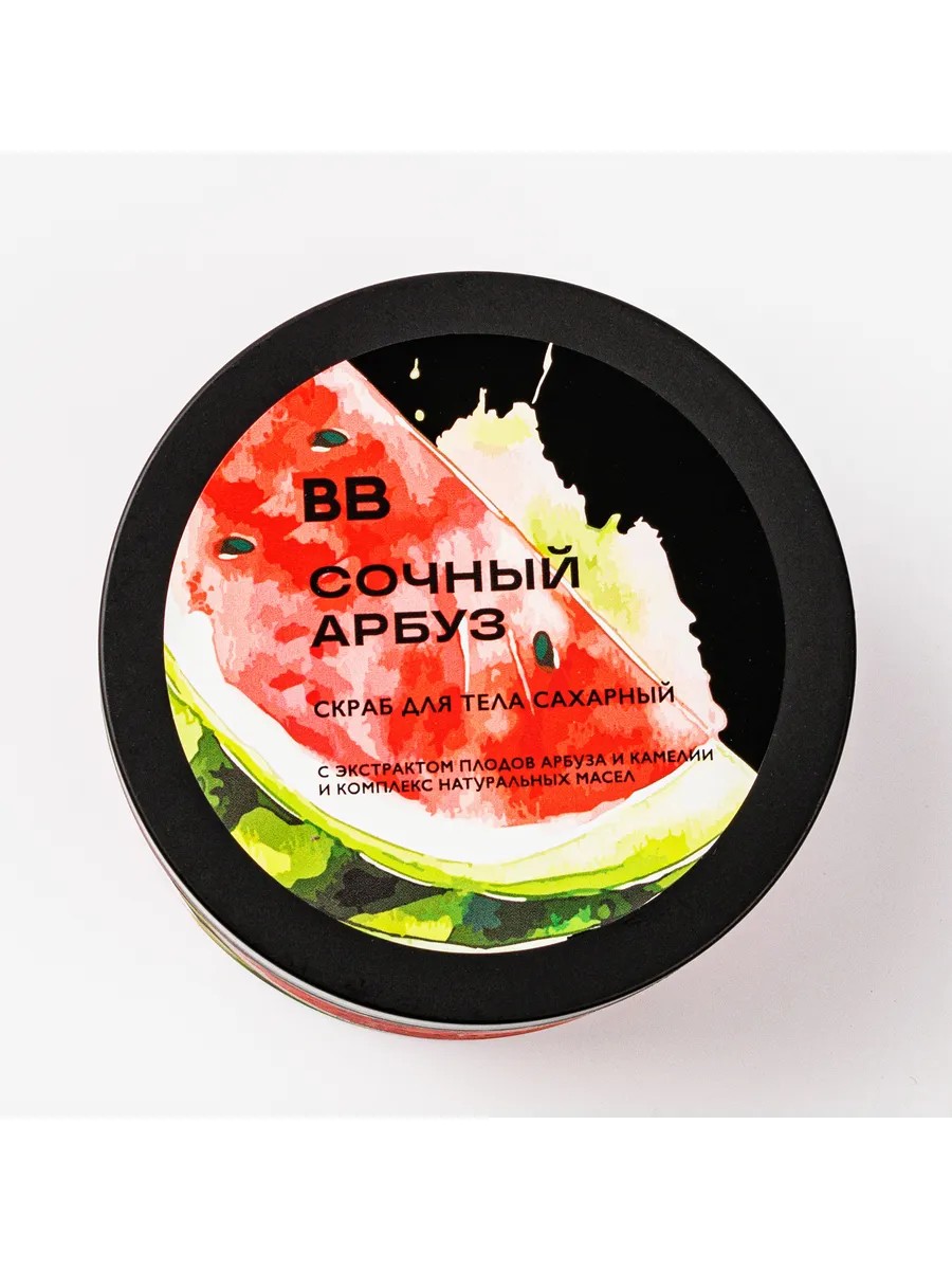 Яркий аромат свежего арбуза придаёт этому скрабу летнее настроение. Сахарные кристаллы деликатно отшелушивают кожу, а масла какао, оливы, кокоса и пальмы обеспечивают питание и мягкость. В составе также — экстракты арбуза и камелии, которые помогают поддерживать гладкость и увлажнённость. Текстура густая, с заметными гранулами и приятной плотностью — удобно распределяется по коже и легко смывается, оставляя ощущение ухоженности без плёнки. Подходит для использования 1–2 раза в неделю во время водных процедур.