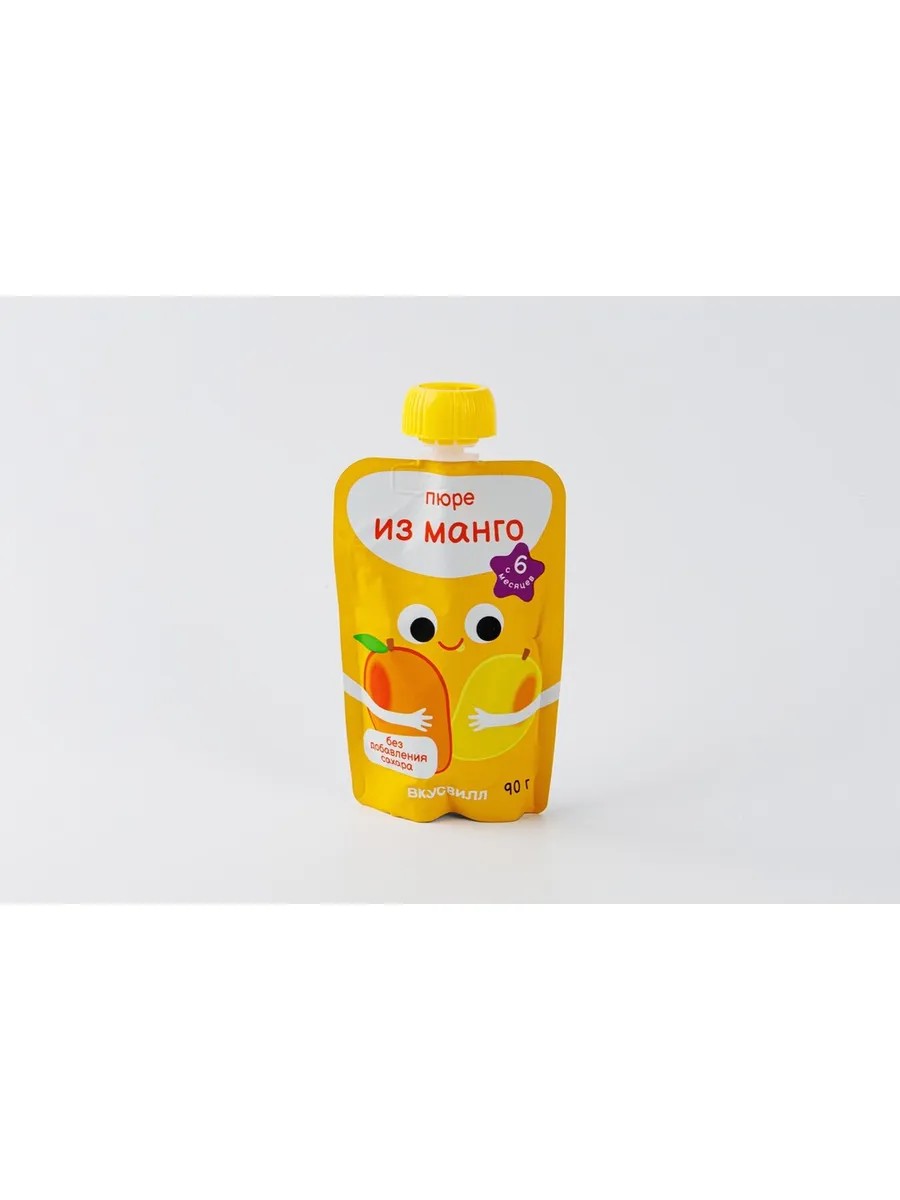 | Composition | Mango puree; Contains sugars of natural origin. Proteins 0.5 g, fats 0.3 g, carbohydrates 15 g, 64; 7 kcal |