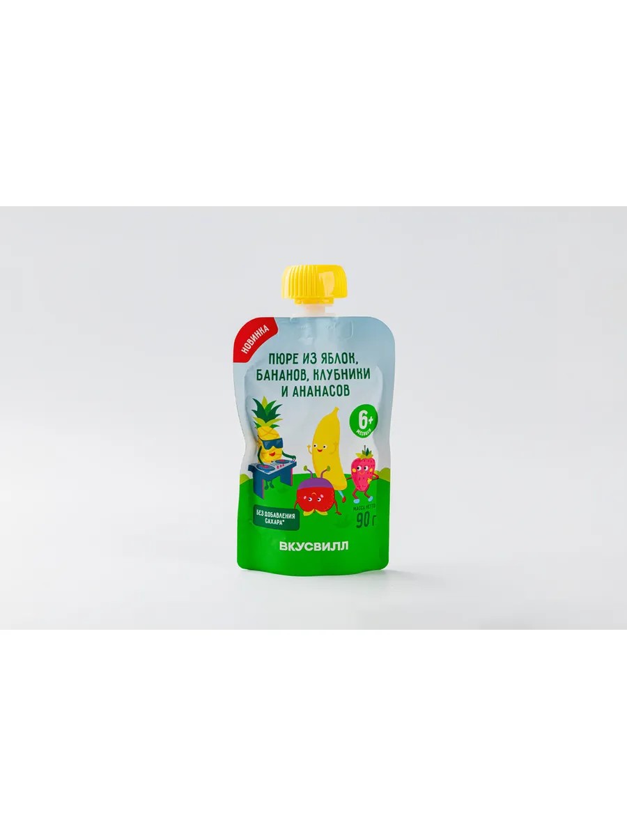 VkusVill Puree from apples bananas strawberries and pineapple 90 g