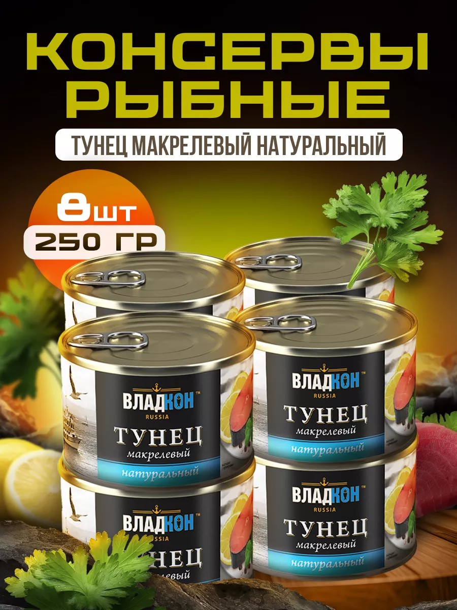 ВЛАДКОН Тунец натуральный макрелевый 250 гр. ГОСТ ВЛАДКОН - 8 шт.