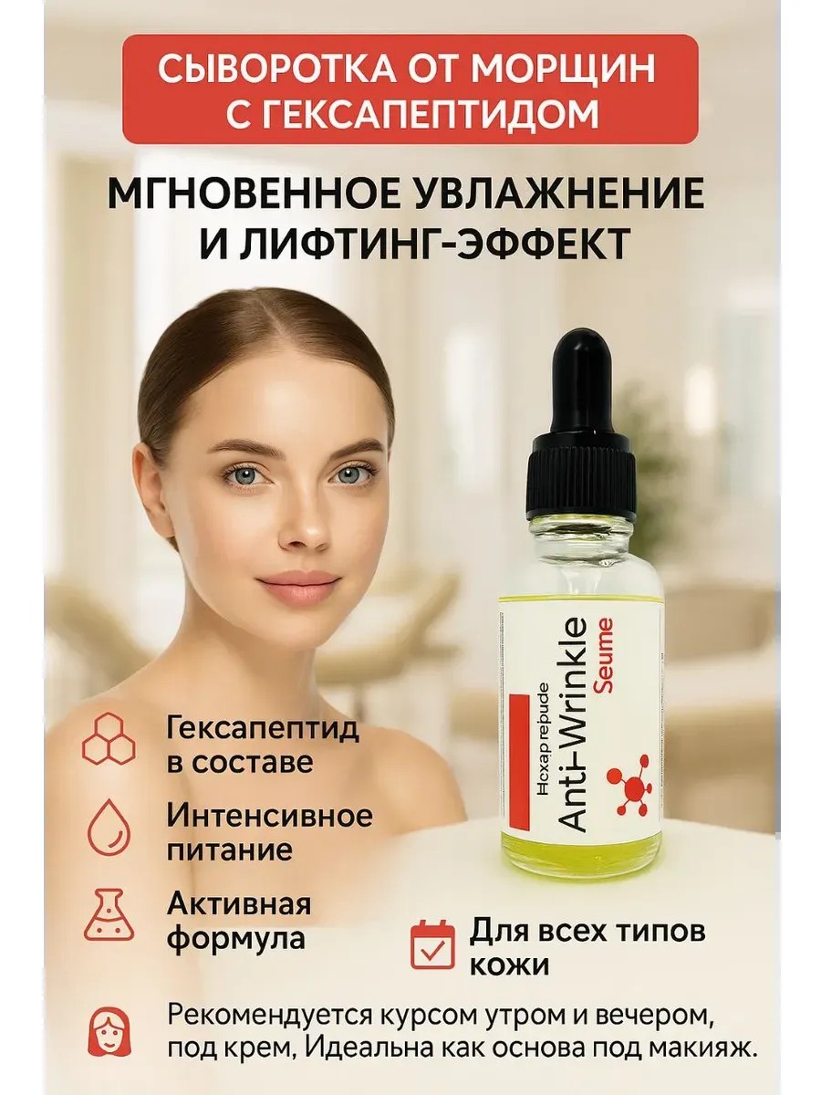| Комплектация | Сыворотка для лица против морщин с гексапептидами - 1 шт. |