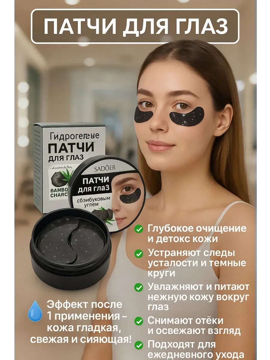 Hydrogel eye patches with bamboo charcoal are the ideal choice for those who want to quickly refresh the under-eye area, eliminate puffiness, and brighten the skin.