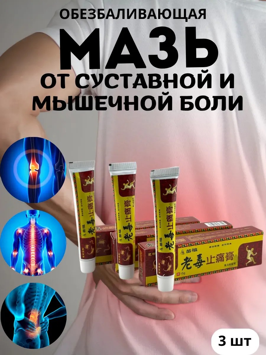 | Комплектация | обезболивающий крем, мазь от боли в суставах, крем от боли в мышцах, мазь при остеохондрозе,; 3 шт |