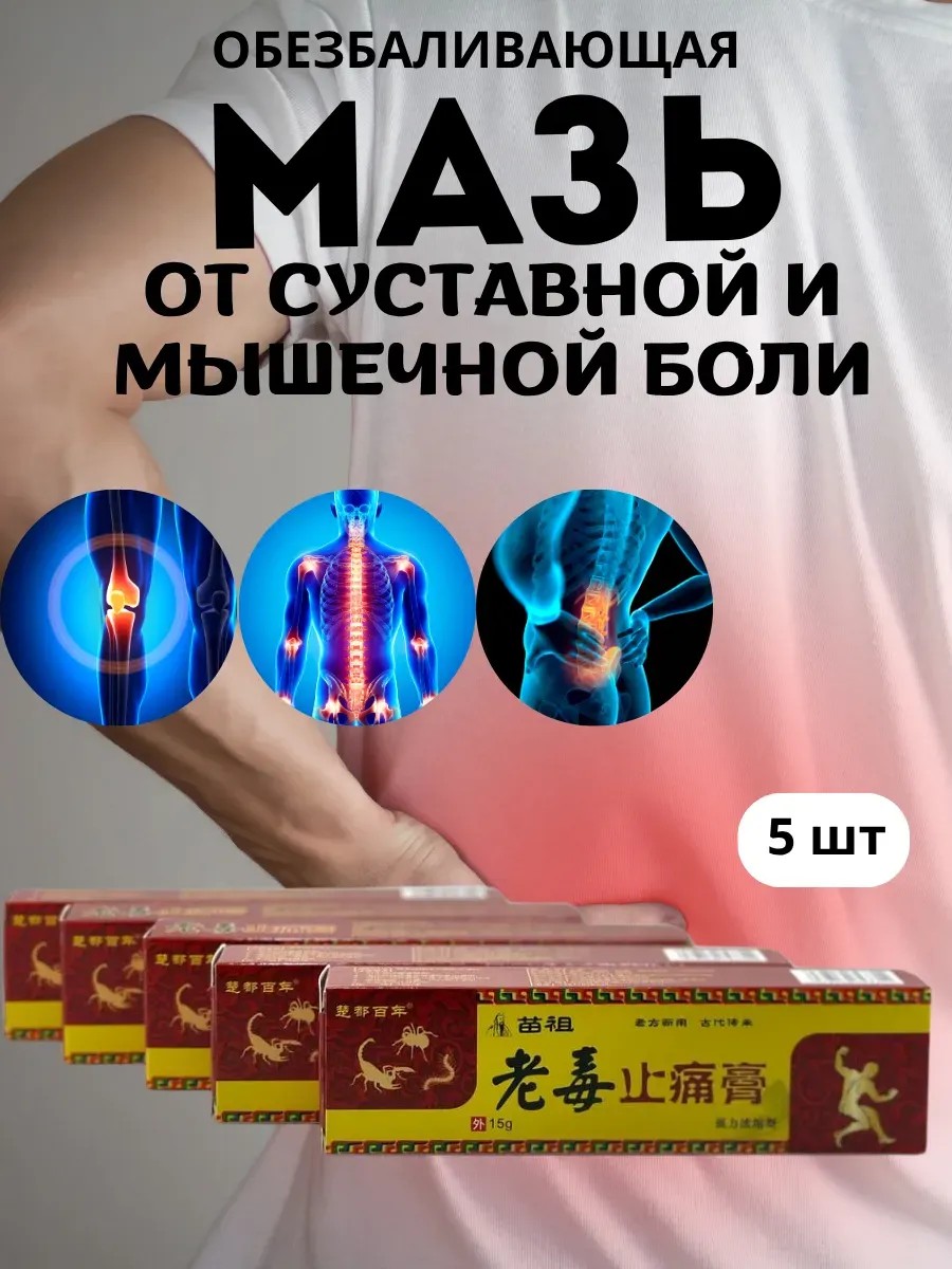 | Комплектация | обезболивающий крем, мазь от боли в суставах, крем от боли в мышцах, мазь при остеохондрозе,; 5 шт |