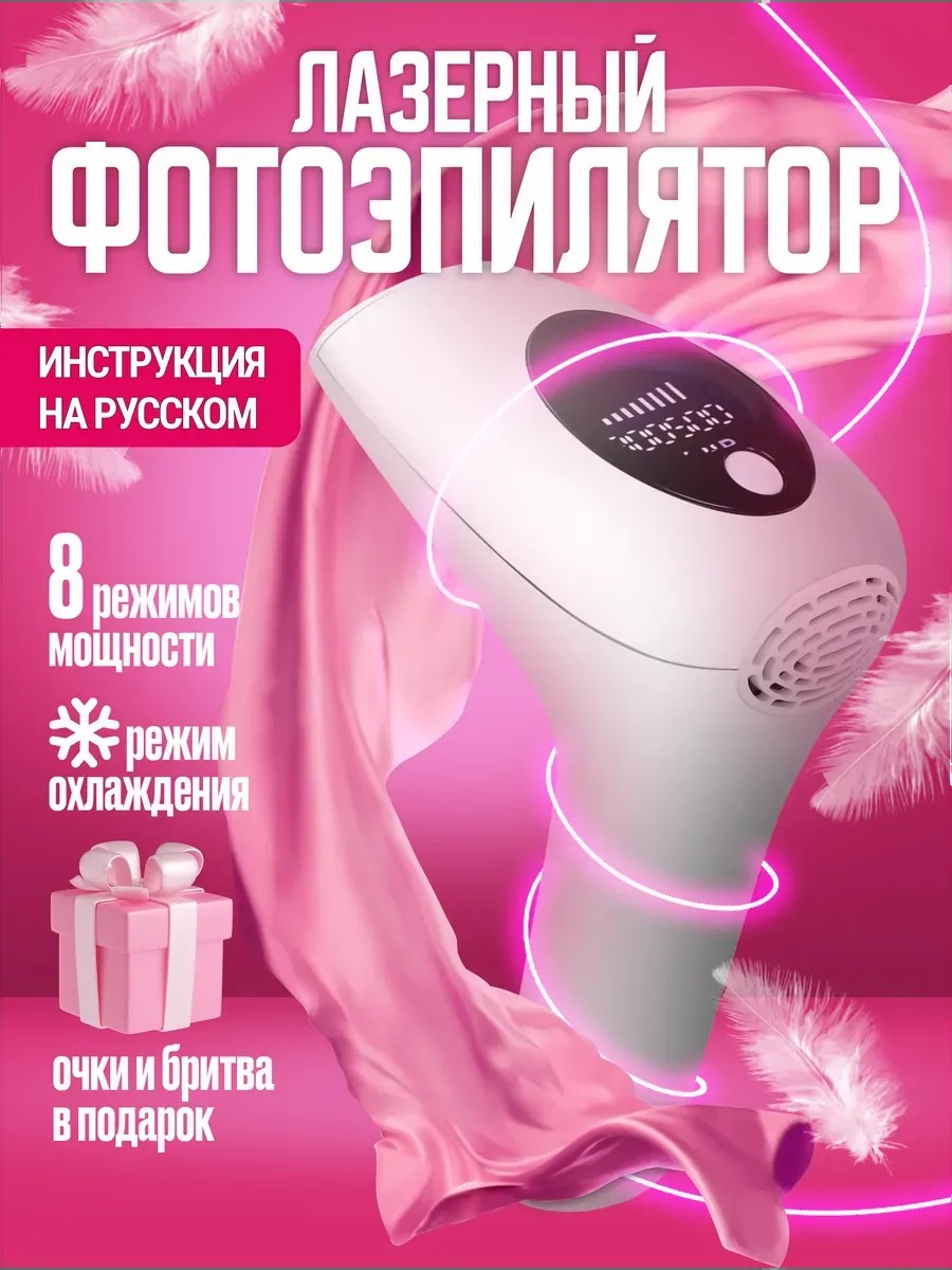| Комплектация | фотоэпилятор; лазерный эпилятор; адаптер питания; бритва; Защитные очки; чехол для хранения |