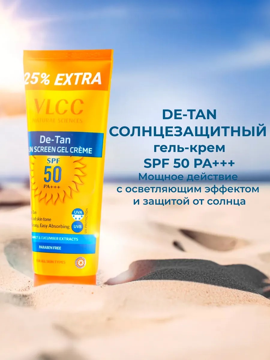 Солнцезащитный гель-крем для лица и тела VLCC De Tan SPF 50 PA+++, 125 мл — сияющая кожа без загара