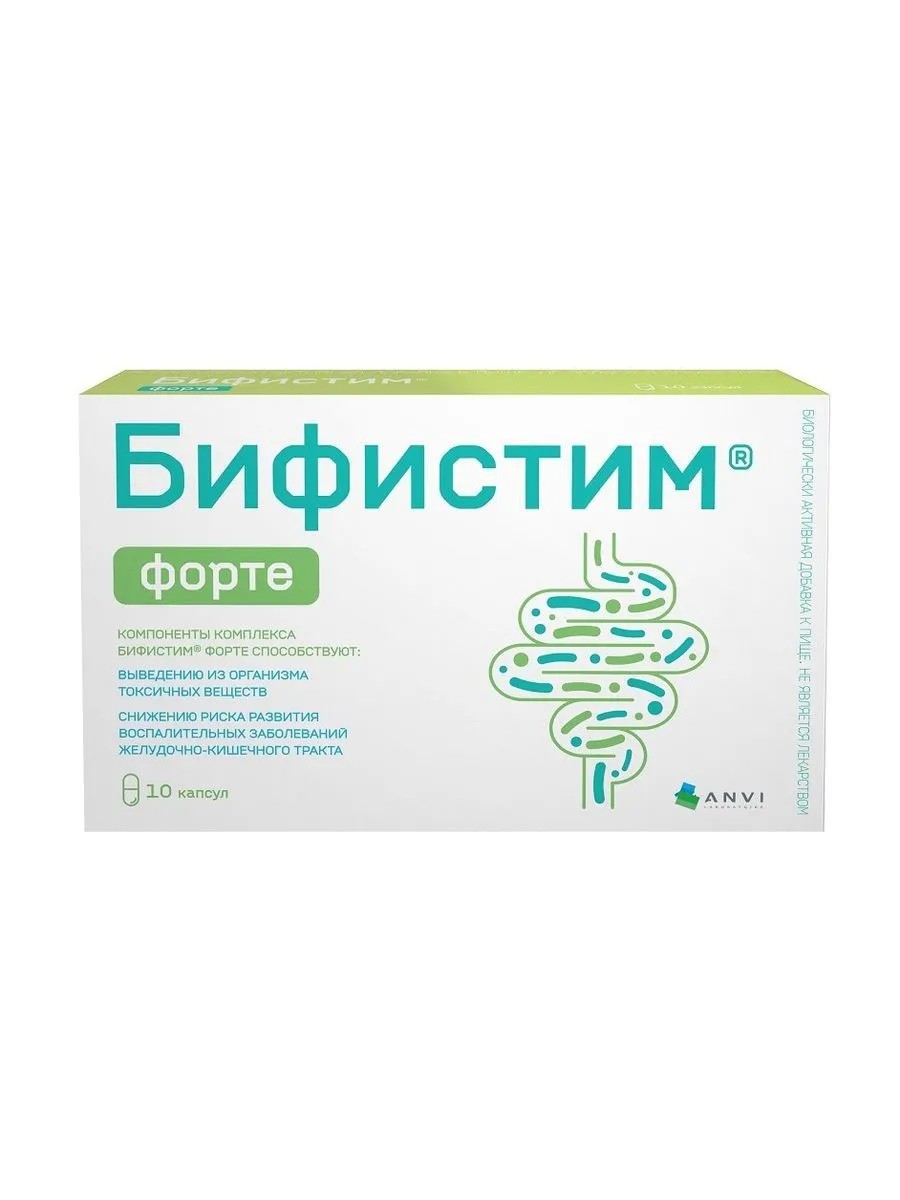 бифистим форте n10 капс по 0,4г. источник пробиотических микроорганизмов (бифидо- и лактобактерий). рекомендуется в качестве биологически активной добавки к пище. bifidobacterium bifidum шт. bfm-cbt-208, bifidobacterium longum шт. bgm-cbt-208, lactobacillus acidophilus шт. lhm-cbt-208, lactobacillus casei шт. lcm-cbt-208, lactobacillus plantarum шт. lpm-cbt-208, инулин, олигофруктоза, e460, e551, e470. для реализации населению через аптечную сеть и специализированные магазины, отделы торговой сети в качестве биологически активной добавки к пище - источника пробиотических микроорганизмов (бифидо- и лактобактерий). (далее согласно приложению). содержание пробиотических микроорганизмов, кое/кап., не менее: лактобактерии - 3х10*9, бифидобактерии - 2х10*9. -