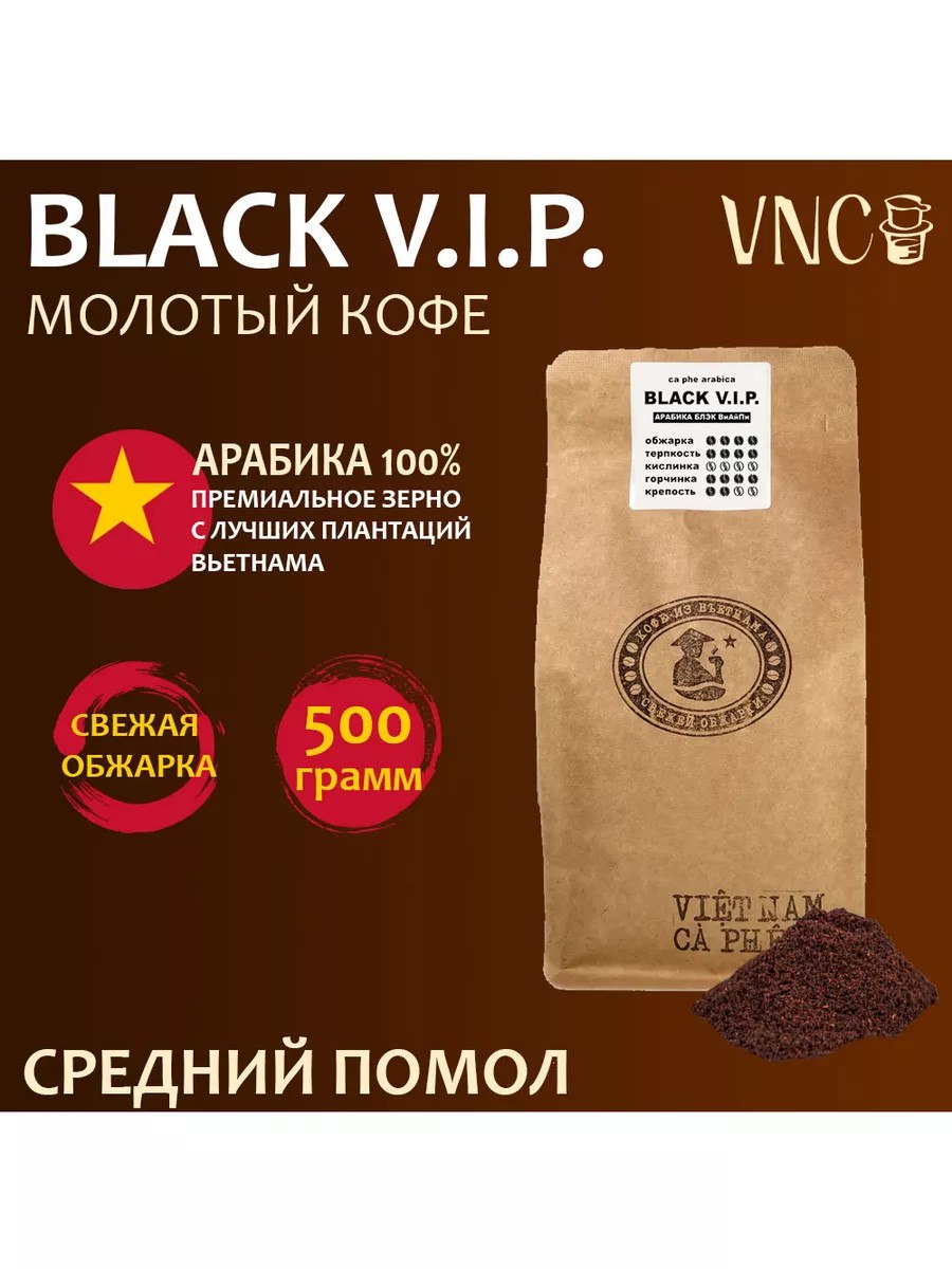 VNC Кофе средне молотый Арабика Black V.I.P. 500 г, Вьетнам