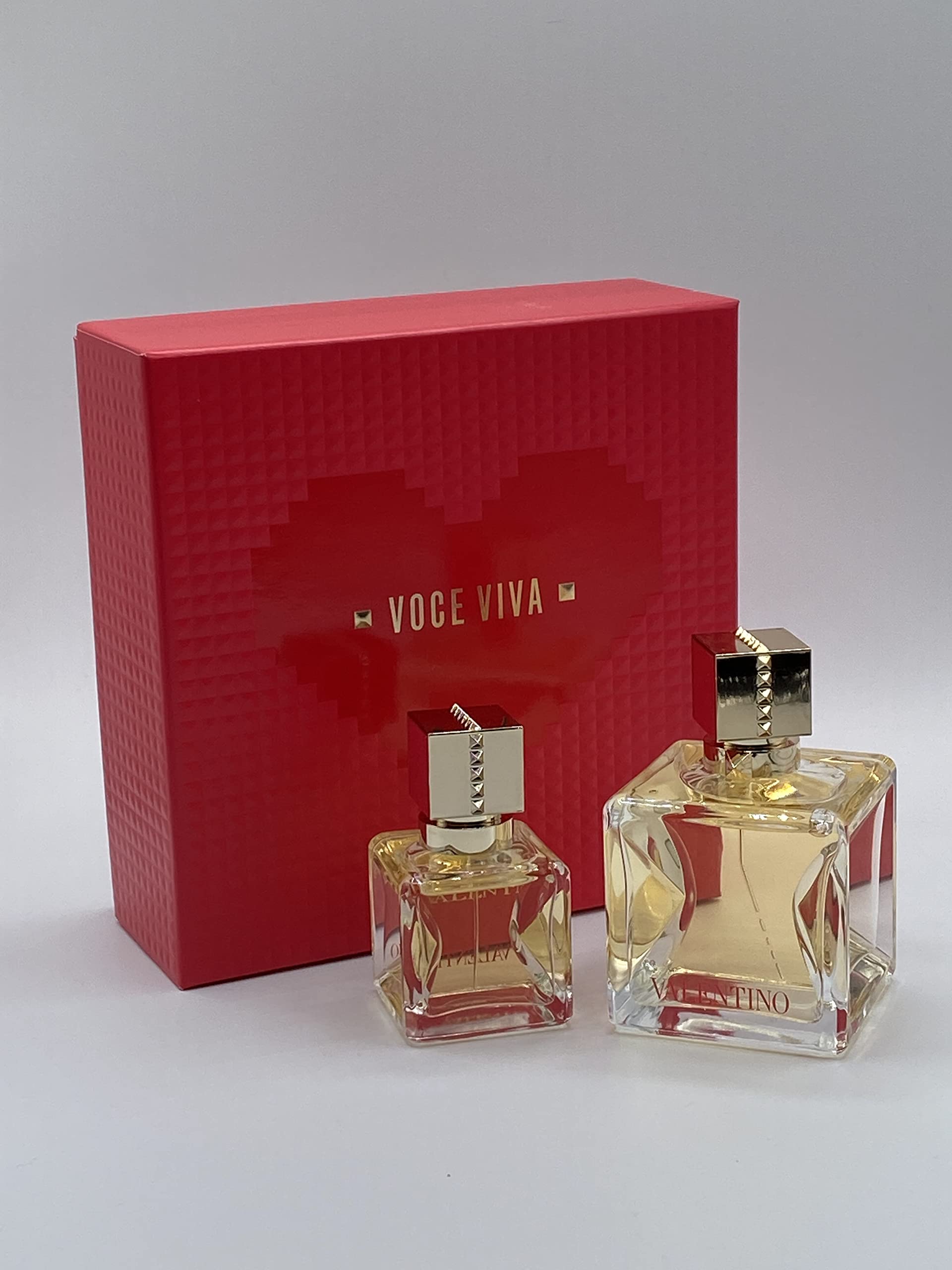 Voce Viva Eau de Parfum. This warm, floral perfume is a harmony of orange blossom and golden gardenia paired with Italian bergamot and mandarin blended atop an unexpected cool note of crystal moss accord and vanilla. GIFT SET INCLUDES: Eau de Parfum Spray, 3.4 oz. Eau de Parfum Spray, 1 oz.