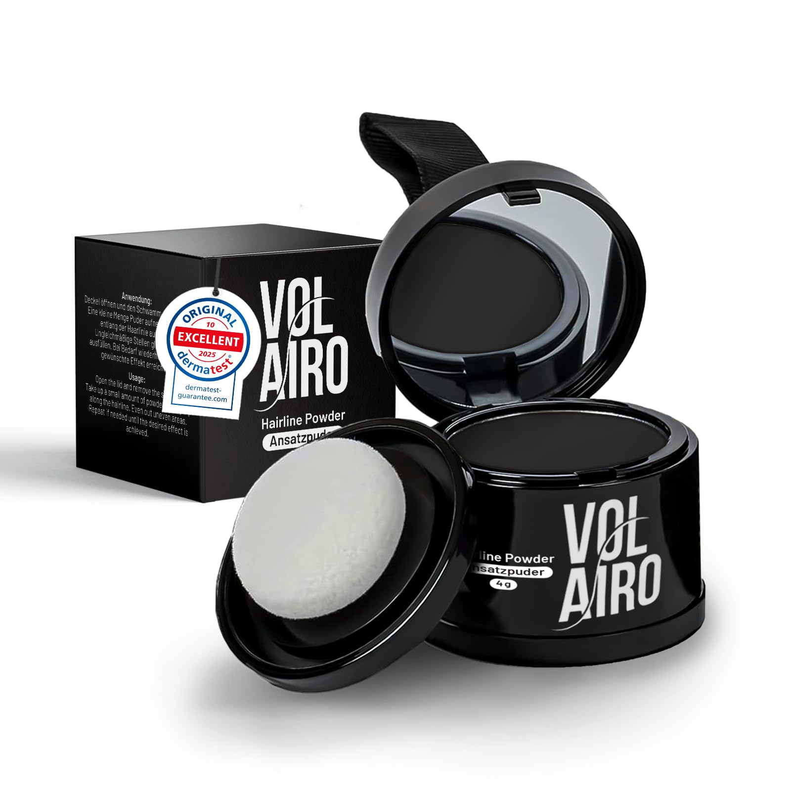 Naturally full hair – in just a few seconds. Whether light hair, gray roots or corners - the powder offers a quick, precise solution for men and women who want a visually denser hair root. With a few simple steps, you can visibly camouflage thin spots and give your hair even, natural-looking volume – without complicated styling or frequent hairdresser visits. Practical, compact and always within reach. The smart 3-in-1 design combines powder, mirror and applicator in a handy format. Ideal for on the go or travelling, whether for spontaneous touch-ups in between or to quickly freshen up the look before an important appointment. Long lasting, waterproof and reliable. The powder adheres gently to the hairline due to static charge and remains reliably in place even during rain, wind or physical activity. At the same time, it can be rinsed out effortlessly the next time you wash it - without any residue or lumps. Suitable for all hair types. Whether short or long hair, beard or temples: the powder adapts flexibly to your hairstyle and can be dosed accurately. Depending on the desired coverage, the intensity can be adjusted individually for a result that suits your style. INGREDIENTS Mica, Talc, Silica, Corn Starch, Magnesium Stearate, Tocopheryl Acetate, Methyl, Parahydroxybenzoates, CI 77491, CI 77492, CI 77499 INSTRUCTIONS FOR USE 1. Open the 3-in-1 box and take out the mirror and sponge. 2. Shake the powder from the box onto the sponge. 3. Use the sponge to work the powder into the hairline. 4. Use the mirror to check whether the hair roots are sufficiently covered. 5. Repeat steps as necessary until desired coverage is achieved. 6. After use, the powder can be easily rinsed out during the next wash. SAFETY WARNING For external use only. Avoid contact with the eyes. Keep out of the reach of children. See moreNatural result without shine: the fine texture ensures a matt, optically dense hair root, without artificial shine or visible transitions to natural hair. Waterproof and smudge-proof in everyday life: Reliably adheres even in rain, sports or heat, whether on short or long hair, braid, bun, beard or temples. A flexible solution for every hair type. Compact and always at hand: the 3-in-1 box with mirror, sponge and powder fits in any bag and is ideal for on the go, traveling or for a quick freshen up in between. Gentle on the skin, free from residues – the ingredients do not clog the pores. The powder can be washed out without residue and is suitable for any scalp. Full hair in seconds - conceals light roots, secret corners and thin hair with natural finish - for a visibly fuller hair root until the next wash.Aanzetpoeder, zwart, 4 g, haarconcealer voor haarverdichting bij zichtbare haaraanzet, waterdicht haarmake-up, verbergt grijs haar en lichte plekken, voor vrouwen en mannen Natuurlijk vol haar – in slechts enkele seconden. Of het nu gaat om licht haar, grijze wortels of inhamsterhoeken – het poeder biedt een snelle, nauwkeurige oplossing voor mannen en vrouwen die een optisch dichtere haaraanzet willen. Met een paar eenvoudige stappen camoufleer je dunne plekken zichtbaar en geef je je haar een gelijkmatig, natuurlijk uitziend volume – zonder ingewikkelde styling of frequente kappersbezoeken. Praktisch, compact en altijd binnen handbereik. Het slimme 3-in-1 design combineert poeder, spiegel en applicator in een handig formaat. Ideaal voor onderweg of op reis, of het nu voor spontane touch-ups tussendoor is of het snel opfrissen van de look voor een belangrijke afspraak. Langdurig, waterdicht en betrouwbaar. Het poeder hecht door statische lading zacht aan de haarlijn en blijft ook bij regen, wind of fysieke activiteit betrouwbaar op zijn plaats. Tegelijkertijd kan het bij de volgende keer wassen moeiteloos worden uitgespoeld – zonder resten of klontjes. Geschikt voor elk haartype. Of het nu kort of lang haar, baard of slapen is: het poeder past zich flexibel aan je kapsel aan en kan nauwkeurig worden gedoseerd. Afhankelijk van de gewenste dekking kan de intensiteit individueel worden aangepast, voor een resultaat dat bij je stijl past. INGREDIËNTEN Mica, Talc, Silica, Corn Starch, Magnesium stearaat, Tocoferylacetaat, Methyl, Parahydroxybenzoaten, CI 77491, CI 77492, CI 77499 GEBRUIKSAANWIJZING 1. Open de 3-in-1 doos en haal de spiegel en spons uit. 2. Schud het poeder uit de doos op de spons. 3. Gebruik de spons om het poeder te verwerken in de haarlijn. 4. Gebruik de spiegel om te controleren of de haaraanzet voldoende is bedekt. 5. Herhaal de stappen als nodig totdat de gewenste dekking is bereikt. 6. Na gebruik kan het poeder gemakkelijk worden uitgespoeld bij de volgende wasbeurt. VEILIGHEIDSWAARSCHUWING Alleen voor uitwendig gebruik. Vermijd contact met de ogen. Buiten het bereik van kinderen bewaren. Meer bekijkenNatuurlijk resultaat zonder glans: de fijne textuur zorgt voor een gematteerde, optisch dichte haaraanzet, zonder kunstmatige glans of zichtbare overgangen naar natuurlijk haar. Waterdicht en veegvast in het dagelijks leven: blijft ook bij regen, sport of warmte betrouwbaar hechten, of het nu bij kort of lang haar, bij vlecht, knot, baard of slapen is. Een flexibele oplossing voor elk haartype. Compact en altijd bij de hand: de 3-in-1 doos met spiegel, spons en poeder past in elke tas en is ideaal voor onderweg, op reis of om tussendoor snel op te frissen. Zacht voor de huid, vrij van resten – de ingrediënten verstoppen de poriën niet. Het poeder kan zonder resten worden uitgewassen en is geschikt voor elke hoofdhuid. Vol haar in enkele seconden – verbergt lichte aanzet, geheimhoudingshoeken en dun haar met natuurlijke finish – voor een zichtbaar vollere haaraanzet tot de volgende wasbeurt.