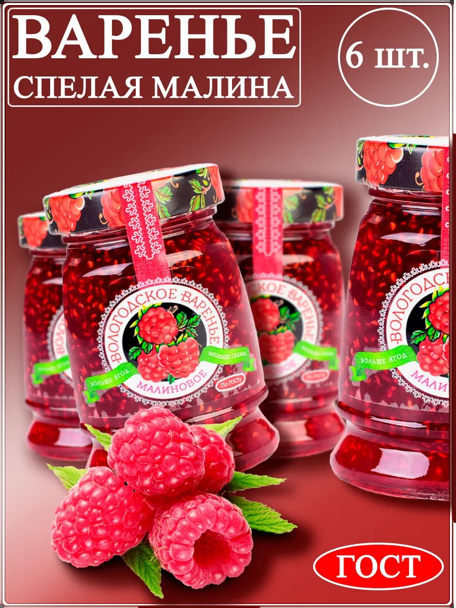 Вологодское варенье Варенье домашнее малиновое 6 шт. * 370 гр.