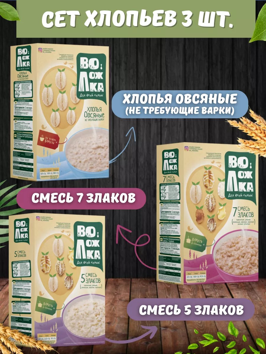 Хлопья Овсяные 5 злаков 7 злаков 3шт по 400г