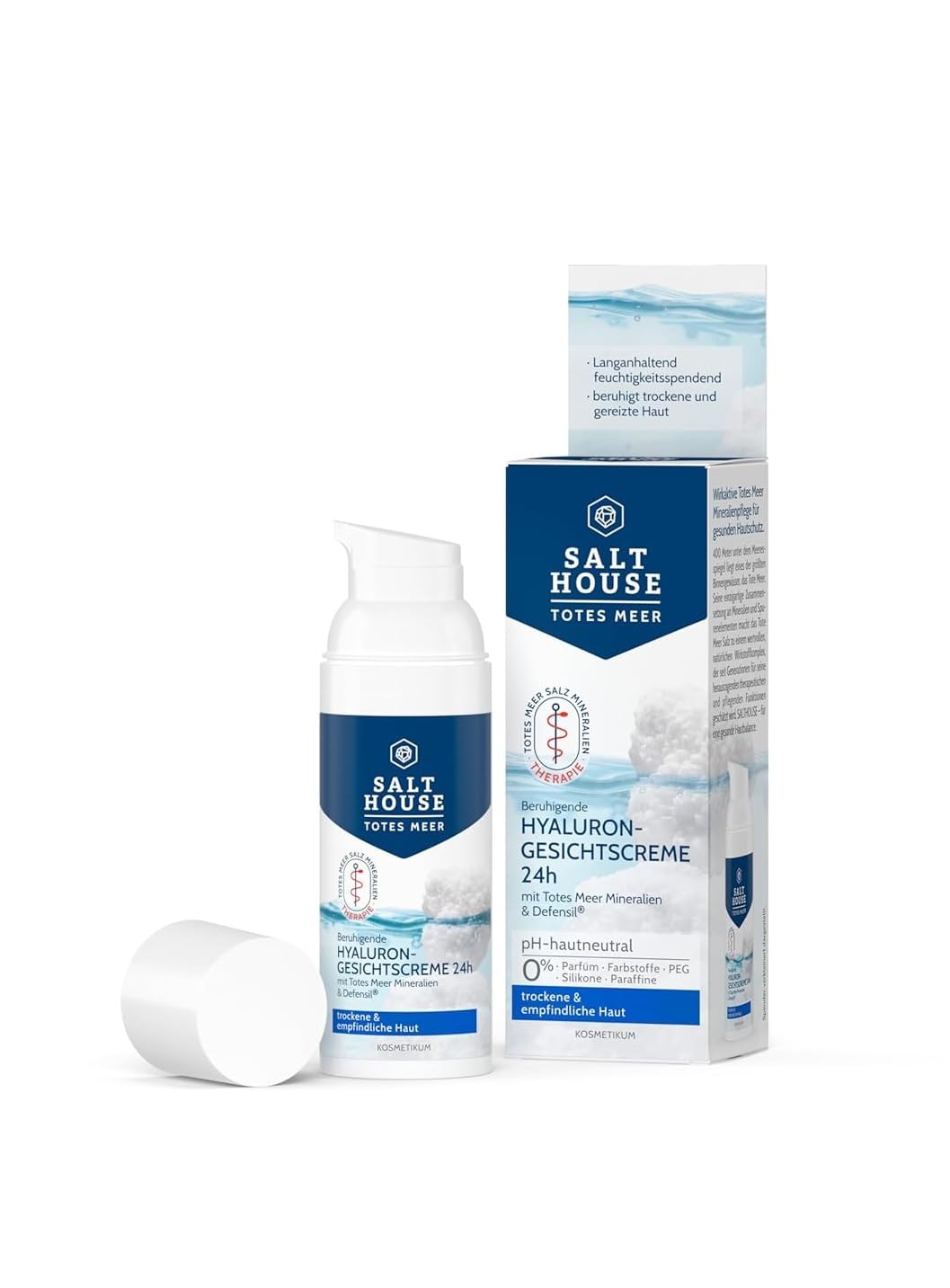 PRACTICAL PACKAGING: Convenient 50ml airless pump bottle preserves formula freshness and ensures precise application. SKIN BENEFITS: Calms irritated skin while deeply moisturizing to reduce dryness and restore natural skin balance. GENTLE FORMULA: pH-neutral composition specifically designed for sensitive skin types, free from perfumes, dyes, PEG, silicones, and paraffins. DEAD SEA MINERALS: Enriched with natural Dead Sea minerals and Defensil to help soothe and protect dry, sensitive skin. 24-HOUR HYDRATION: Advanced hyaluronic acid formula provides lasting moisture for a full day, keeping skin hydrated and supple.