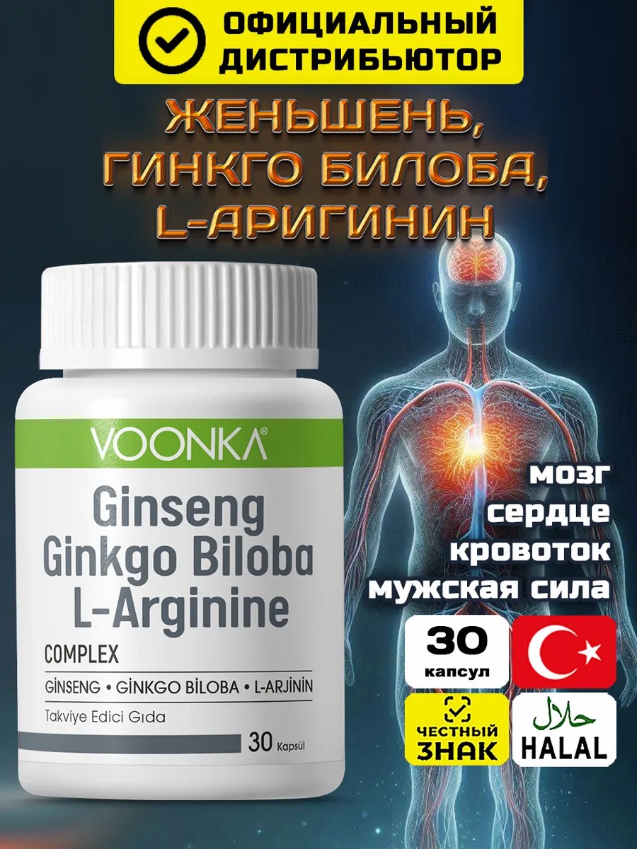 Женьшень Гинко Билоба Аргинин в капсулах БАД для энергии