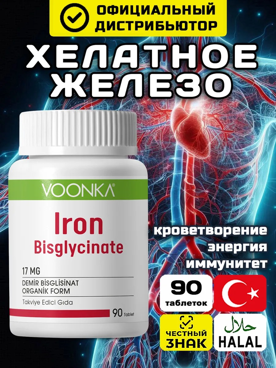 Voonka Хелат железо витамины для женщин Iron бисглицинат турция