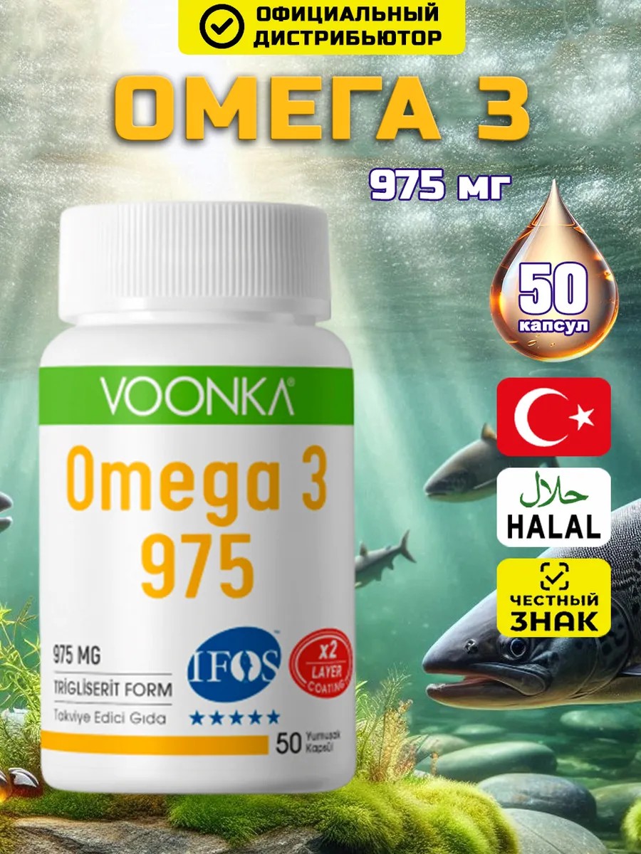 Voonka Омега 3 рыбий жир в капсулах взрослым турция 50 шт