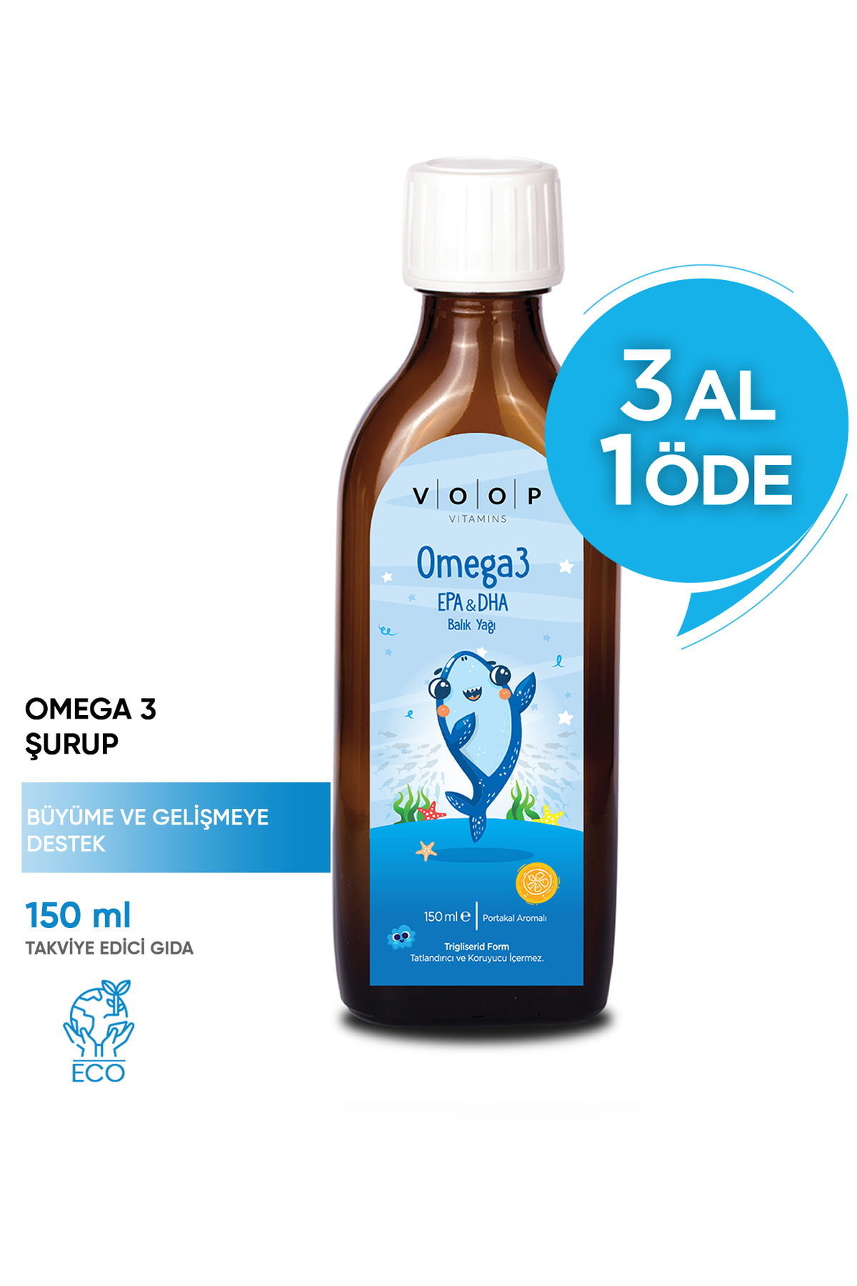 Voop Çocuklara Özel Omega 3 Balik Yagi Portakal Aromali Surup Yüksek EPA DHA Kaynagi - 150 ml