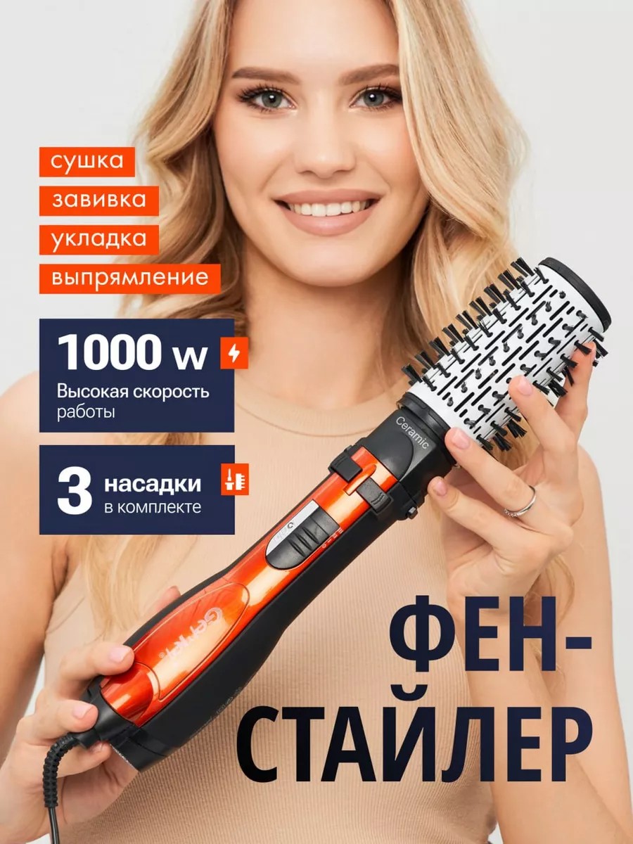 Фен щетка с вращением и фен стайлер крутящийся легко придают форму и объем волосам.