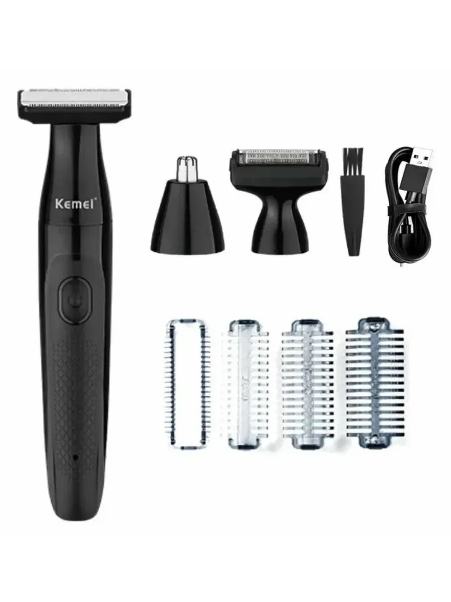 Беспроводная электробритва триммер для лица и ушей с 3 сменными насадками Kemei KM 114 является инновационным инструментом для ухода за внешностью. Бритва разработана для чистого сухого и влажного бритья щетины, бороды и усов, что позволяет поддерживать кожу в идеальном состоянии каждый день не только дома, но и в дороге. Мощный и тихий роторный мотор сделает бритьё по-настоящему чистым, а благодаря острым лезвиям, бритва точно повторяет контуры лица, не упуская ни одной, даже самой мелкой детали. Сеточка и бритвенная головка выполнены из нержавеющей стали с титановым покрытием, триммер гиполаллергенный благодаря. Этот инструмент создан для тех, кто ценит качество, удобство, практичность и профессиональный уход за собой. Дорожная бритва выполнена в стильном дизайне с использованием качественных и дорогих материалов и предназначен для эффективного бритья контуров бороды, усов и устранения щетины, висков, бритья головы и лица. Компактные размеры и легкость делают этот инструмент идеальным спутником в дороге. Он легко помещается в багаж и не занимает много места, что особенно ценно в условиях ограниченного пространства. Благодаря встроенному аккумулятору, бритва способна работать до месяца без подзарядки, что позволяет использовать ее вне дома или в отеле. Индикатор заряда батареи покажет Вам когда шейвер необходимо зарядить. Прибор может быть легко очищен под проточной водой, что облегчает его уход и обеспечивает длительный срок службы. Комплектация включает в себя триммер, сменные насадки, зарядный шнур, 4 дополнительные насадки для бритвы и щеточку для чистки, что делает этот набор особенно привлекательным для тех, кто ценит удобство и функциональность в одном флаконе. Бритва Kemei идеально подходит для профессиональной работы в барбершопе или парикмахерской, так и для домашнего использования. Шейвер Kemei - это лучший подарок на день рождения, 23 февраля или любой другой праздник для вашего любимого мужа, отца, сына или друга.