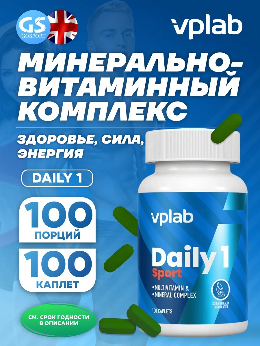 Expires until October 31, 2026. Daily 1 Vitamin Complex, 100 Caplets. Today's fast-paced lifestyle makes it difficult to maintain a strong immune system, which is why we're so often susceptible to various illnesses. To avoid negative impacts on our bodies, we must ensure we're getting enough essential vitamins and minerals. VPLab created the Daily 1 vitamin and mineral complex for this very purpose. This unique Daily 1 complex contains 25 vitamins and minerals. Folic acid, vitamin C, vitamin K1, vitamin B12, iron, magnesium, and zinc are just a few of the beneficial substances contained in one caplet of Daily 1. Daily 1 helps easily absorb nutrients with digestive enzymes, supporting optimal health and well-being. One package is designed for 100 days of use, allowing you to experience the beneficial properties of this complex over an extended period. Take one caplet daily with food and water.