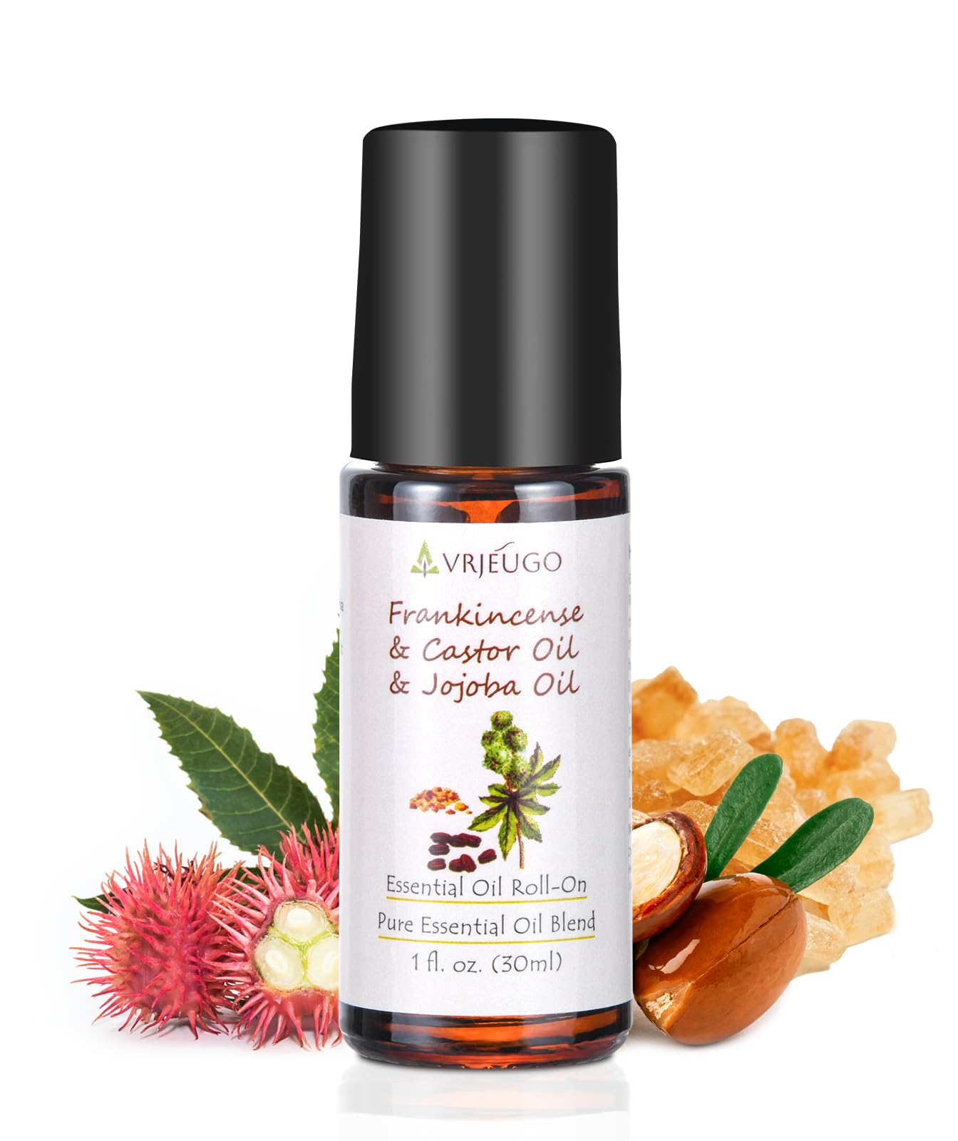VRJEUGO Organic Frankincense Castor & Jojoba Oil Roll-On 100% Pure Essential Oil Blend for Face & Body | Nourishing & Hydrating Body Firming Rollerball 30ML
